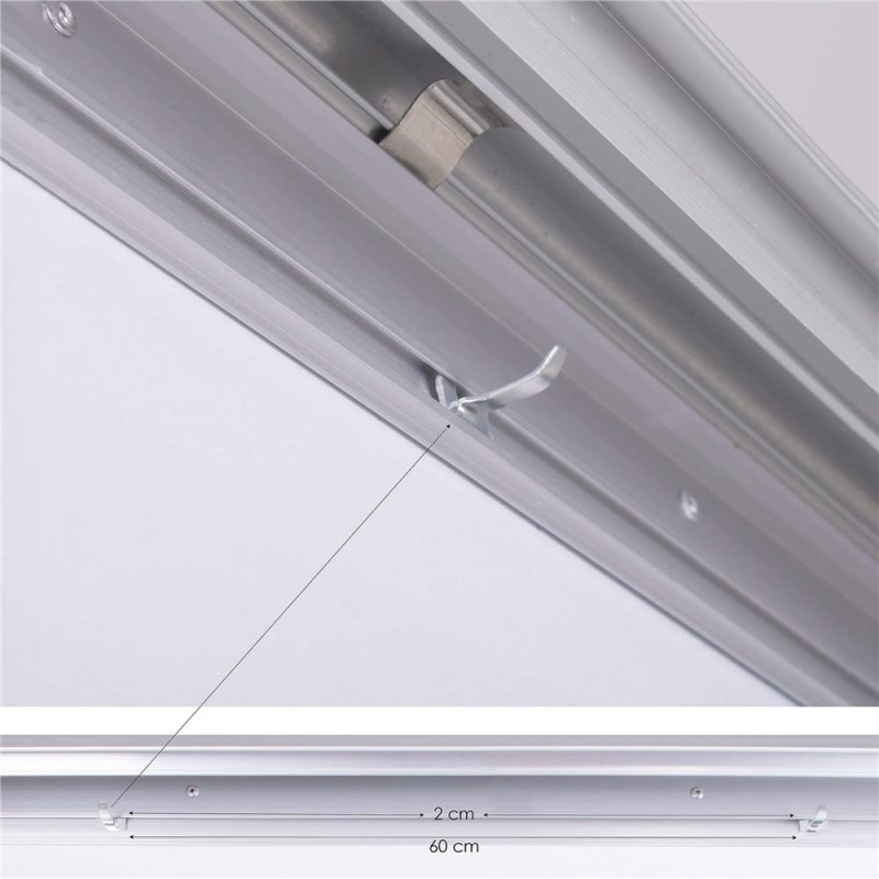 Raft inferior: 62x4 cm Tabla magnetica a fost conceputa pentru a fi folosita acasa, la birou sau la scoala. Suprafata alba va permite sa agatati notite pe ea folosind magneti si sa scrieti pe ea cu marker care pot fi sters cu usurinta. Cadrul placii este realizat dintr -un profil de aluminiu, iar pe colturi sunt prevazute protectii din plastic pentru a asigura siguranta maxima. Manerele superioare pe care este atasata hartia flipchart pot fi reglate la o distanta maxima de 60 cm, facand ca majoritatea hartiilor disponibile sa fie potrivite pentru acest tip de tabla. Pentru a asigura siguranta in timpul utilizarii, flipchart-ul este echipat cu o clema pentru atasarea unui bloc de hartie. Datorita acestui lucru, blocul este tinut ferm si sigur in pozitia sa, asigurand confort in timpul jocului sau al prezentarii. Flipchart-ul este reglabil pe inaltime de la 170 cm la 210 cm. Datorita acestui lucru, poate fi ajustat individual la inaltimea utilizatorului. Tabla magnetica are un cadru mobil: Cele cinci roti pivotante permit o schimbare usoara a locatiei, iar dispozitivul de blocare a miscarii impiedica deplasarea placii in timpul utilizarii. Materialele adecvate pentru roti nu zgarie podeaua. Asamblarea rapida si simpla este un avantaj clar al flipchart-ului. Pur si simplu introduceti placile in baza si reglati-i inaltimea la nevoile dvs. actuale.