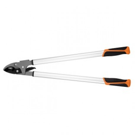 Foarfecele de crengi by-pass 765 mm, cu o raza de actiune de pana la 40 mm, cutie de viteze pentru a creste forta de impingere cu 60% 15-251 de la NEO TOOLS este o unealta profesionala pentru lucrul in gradina cu plantele inalte, fara a fi nevoie de o scara. Bratele usoare din aluminiu va permit sa tineti scula in sus fara sa va incordati muschii. Acoperirea suplimentara a manerelor cu bi-material antiderapant are un efect pozitiv asupra sigurantei in maini. Foarfecele de crengi este conceput pentru a manipula ramuri cu un diametru maxim de 40 mm. Transmisia cu parghie cu role creste puterea de taiere cu 60%. Echipat cu un by-pass, acesta influenteaza in mod favorabil o mai mare precizie a lucrului. Lamele foarfecelui de gradina au un strat antiaderent si sunt potrivite pentru taierea lemnului proaspat. O unealta recomandata atat pentru profesionisti, cat si pentru pasionatii de gradinarit.
