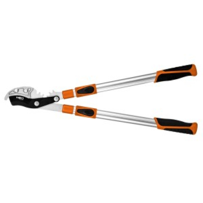 Foarfecele cu nicovala pentru crengi 670 mm, raza de actiune pana la 42 mm, transmisie, manere telescopice 15-254 de la NEO TOOLS este un instrument profesional pentru lucrul in gradina cu plante mai inalte, fara a fi nevoie sa folositi o scara. Bratele telescopice usoare din aluminiu va permit sa tineti scula in sus fara sa va incordati muschii. Acoperirea suplimentara a manerelor cu bicomaterial antiderapant are un efect pozitiv asupra sigurantei in maini. Foarfecele de crengi este potrivit pentru crengi cu un diametru maxim de 42 mm. Transmisia cu parghie cu role creste puterea de taiere cu 60%. Echipat cu un sistem de nicovala influenteaza pozitiv precizia si viteza de lucru. Lamele foarfecelui de gradina sunt acoperite cu un strat antiaderent si sunt potrivite pentru taierea lemnului dur si uscat. O unealta recomandata atat pentru profesionisti, cat si pentru pasionatii de gradinarit.