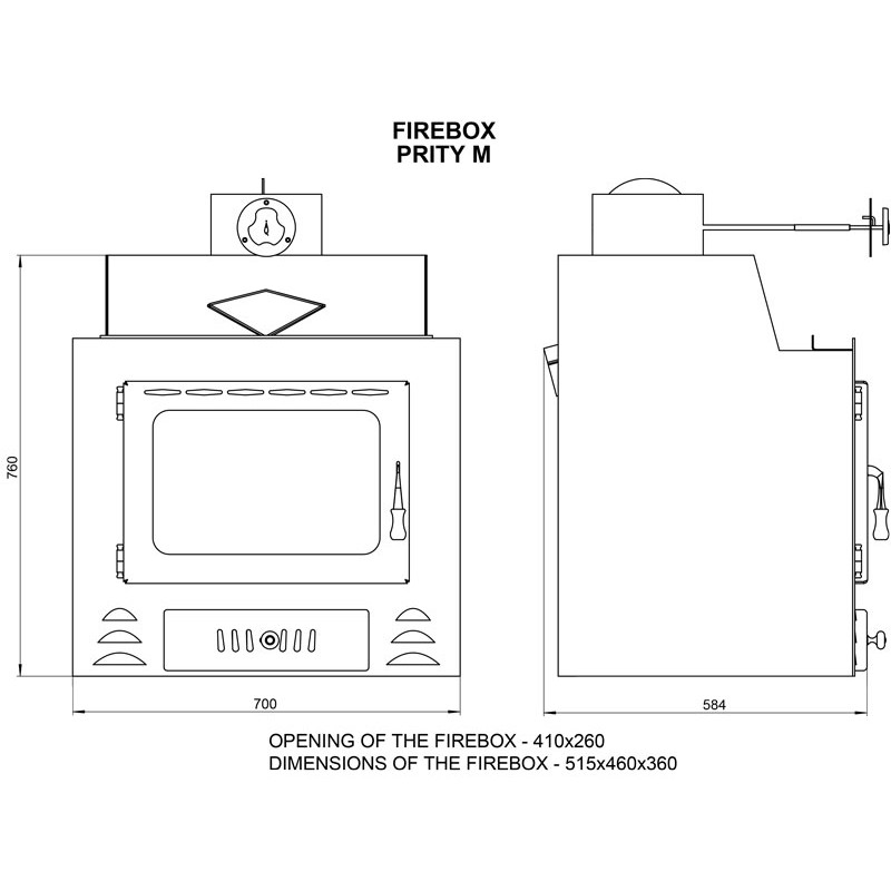 Focar de semineu simpla Prity M poate incalzi 200m³ de aer la o casa izolata sau 144m³ de aer la o casa neizolata.