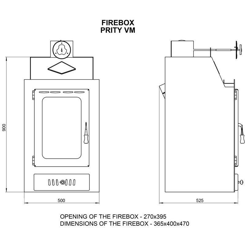 Focar de semineu simpla Prity VM poate incalzi 200m³ de aer la o casa izolata sau 144m³ de aer la o casa neizolata.