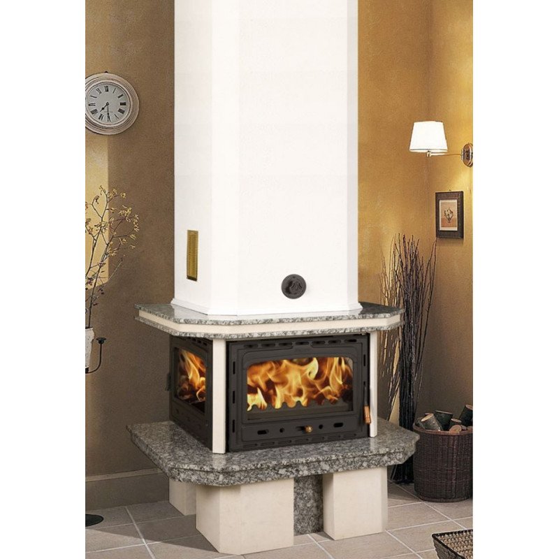 Rama usi impreuna cu ramele sticlei din lateral sunt din fonta. In interiorul camerei de ardere intra un lemn de 58cm.
