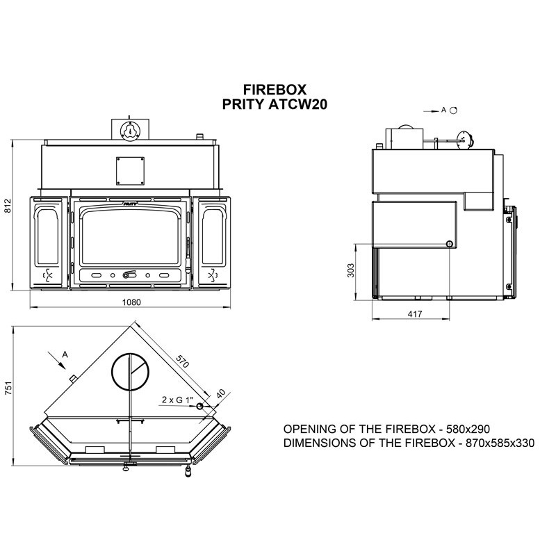 Volumul bazinului de apa este de 34 litri. Focar de semineu tip centrala Prity ATCW20 poate incalzi 384m³ de aer la o casa izolata sau 277m³ de aer la o casa neizolata.