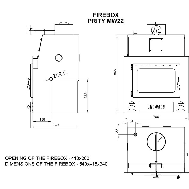 Volumul bazinului de apa este de 36 litri. Focar de semineu tip centrala Prity MW22 poate incalzi 415m³ de aer la o casa izolata sau 300m³ de aer la o casa neizolata.