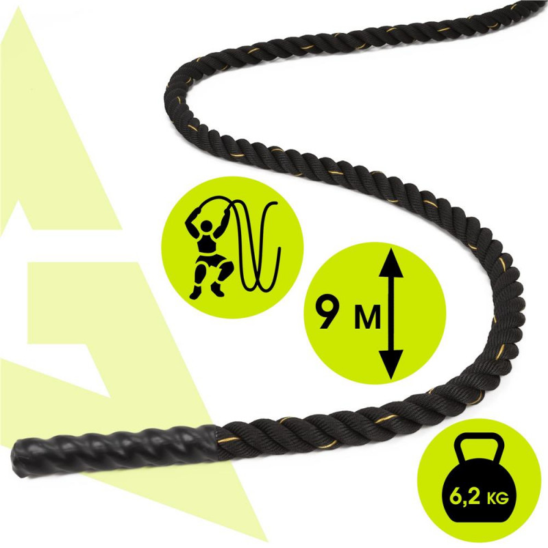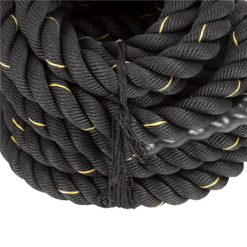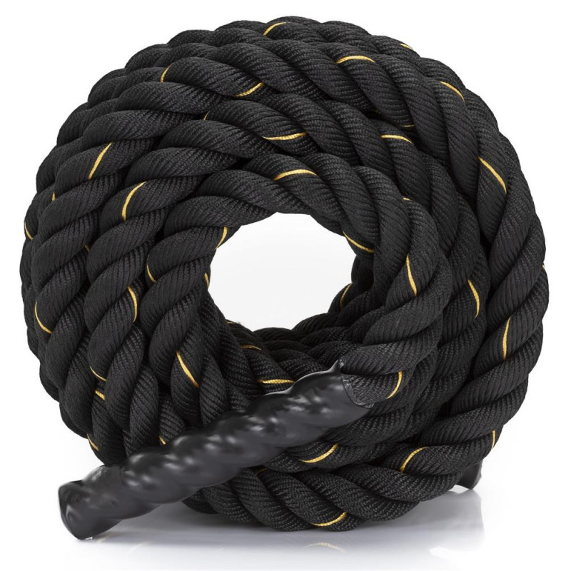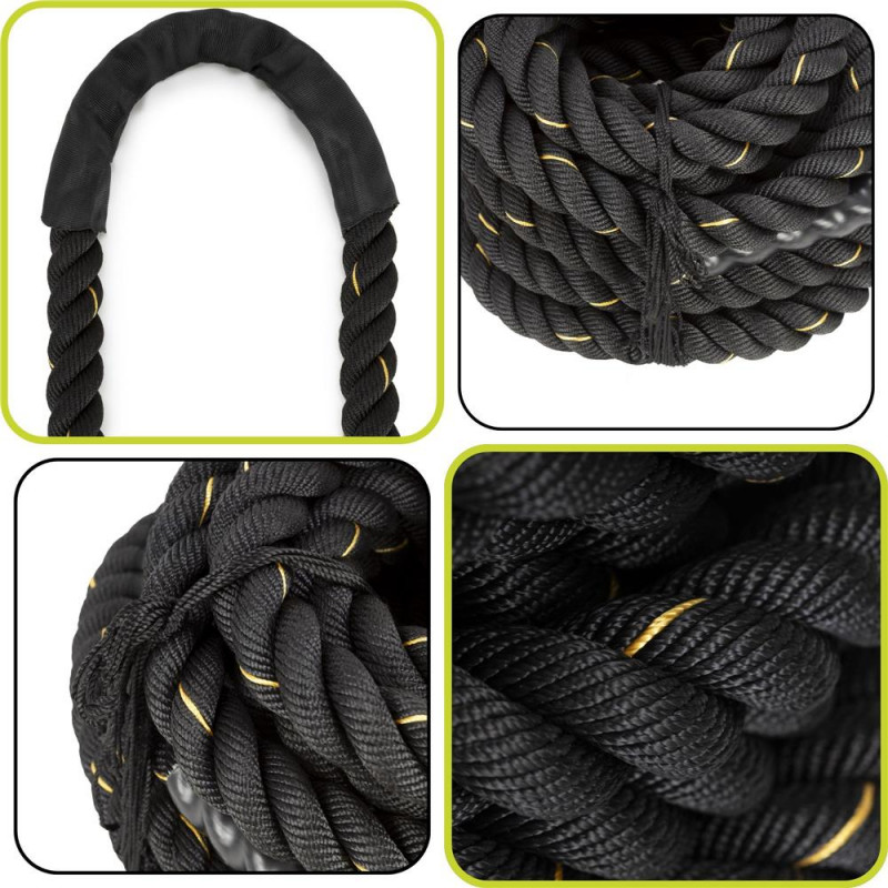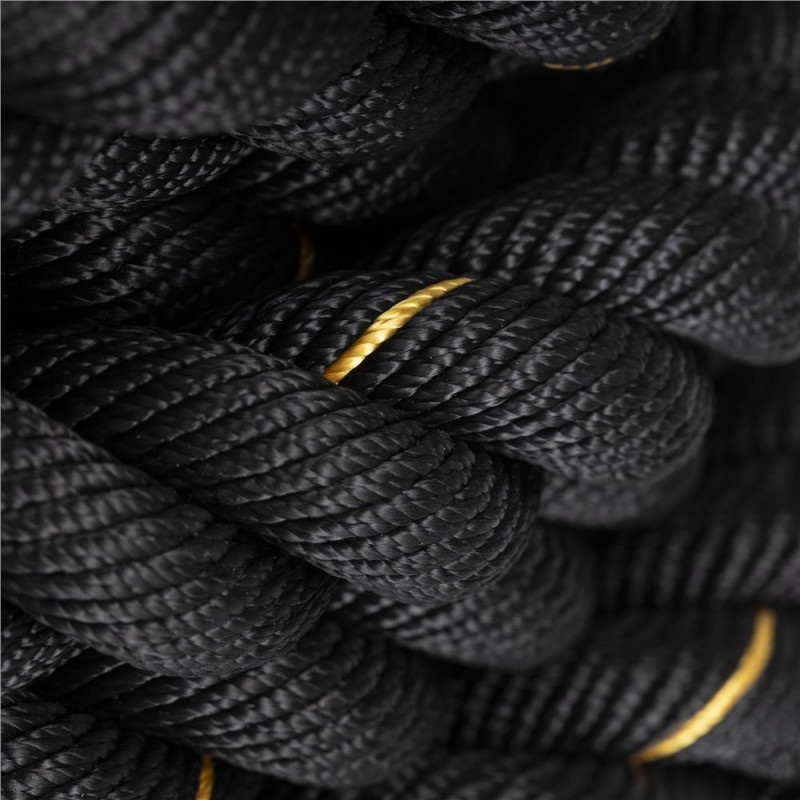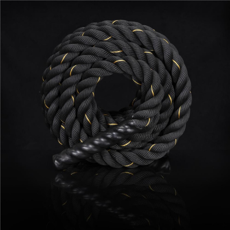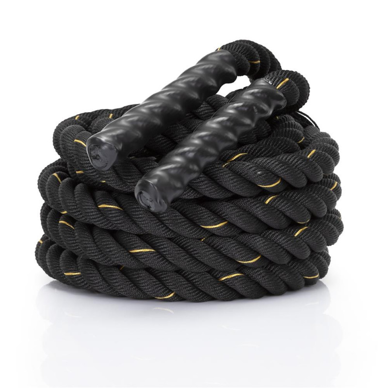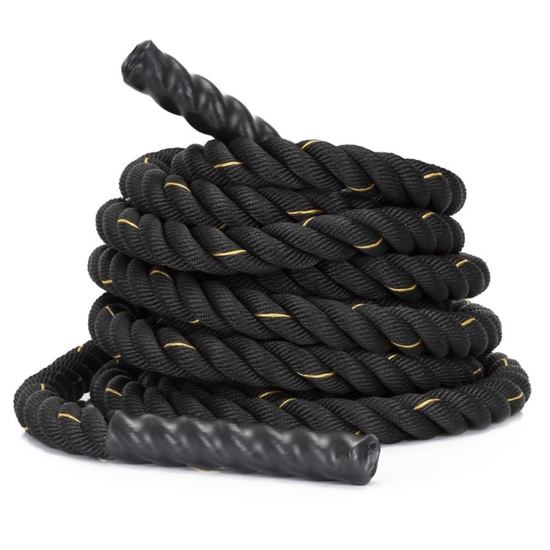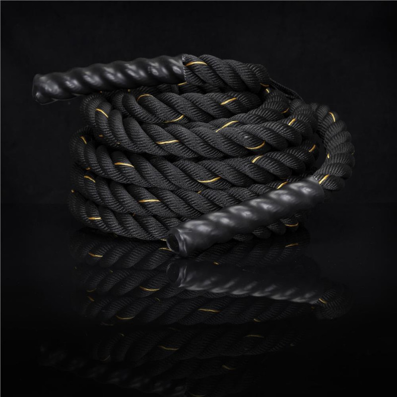 Scurta descriere: Lina de antrenament destinata exercitiilor functionale si cardio, realizata din poliester rezistent. Este potrivita pentru cresterea fortei, rezistentei si coordonarii. Manerele antialunecare asigura control bun in timpul exercitiilor, iar mansonul protector reduce uzura in zonele de frecare.
