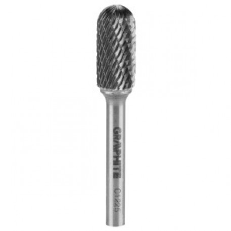 Burghiul metalic GRAPHITE (ref. 55H361) tip C (cilindric rotunjit) de dimensiuni 12 x 25 mm este o unealta de slefuit dreapta pentru taierea sau limarea suprafetelor pieselor de prelucrat. Acesta este conceput pentru lucrul in materiale precum metalul, aluminiul si materialele plastice. Utilizarea carburii sinterizate confera sculei o duritate ridicata si rezistenta la uzura abraziva. Freza este prevazuta cu taiere dubla, ceea ce permite indepartarea usoara a aschiilor din piesa de prelucrat.