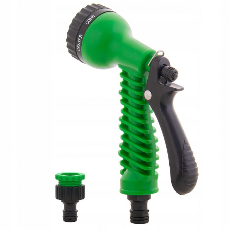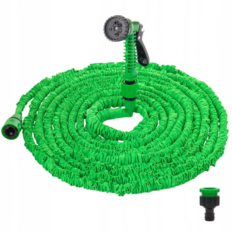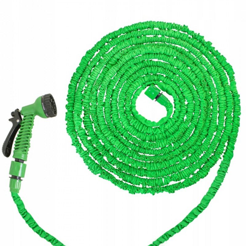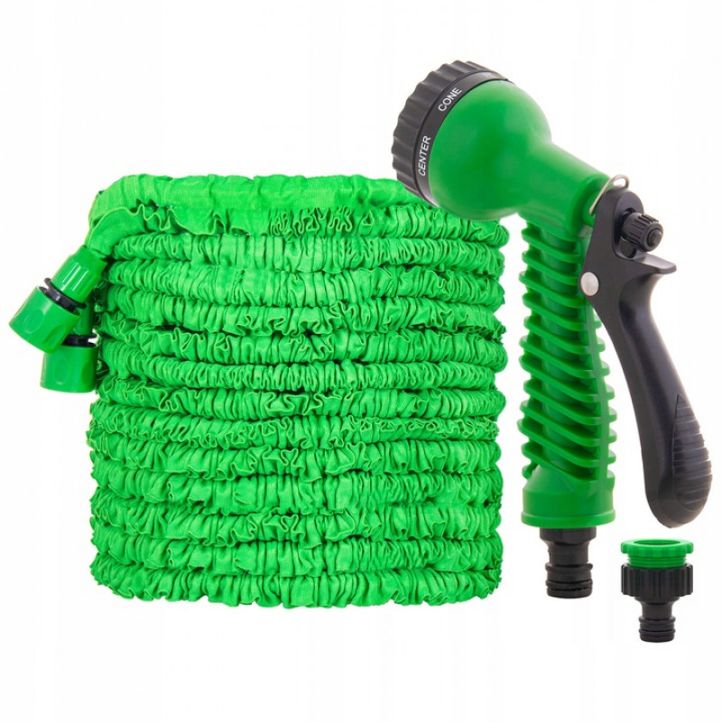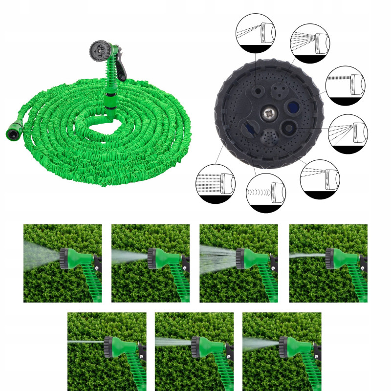 Aspersor cu 7 functii De asemenea, este inclus un pistol cu 7 functii de stropire: con, plin, ceata, dus, plat, central si jet. Capacitatea de a regla nivelul de apa care iese va permite sa va udati plantele in mod ferm sau delicat, sa va spalati bine masina sau sa va imbaiati animalul de companie. In plus, pistolul are un maner antiderapant si o functie de blocare, este suficient sa inclinati carligul metalic din pistol pentru a-l bloca - apa va curge apoi fara a fi nevoie sa apasati constant pe butonul pistolului. Furtunul de gradina este fabricat dintr-un material special care se poate extinde de la 15 m la pana la 45 m atunci cand este atasat la o sursa de apa. Acest lucru inseamna ca produsul nu ne limiteaza si il putem folosi atat aproape, cat si departe. In plus, este usor de depozitat, deoarece nu ocupa mult spatiu.