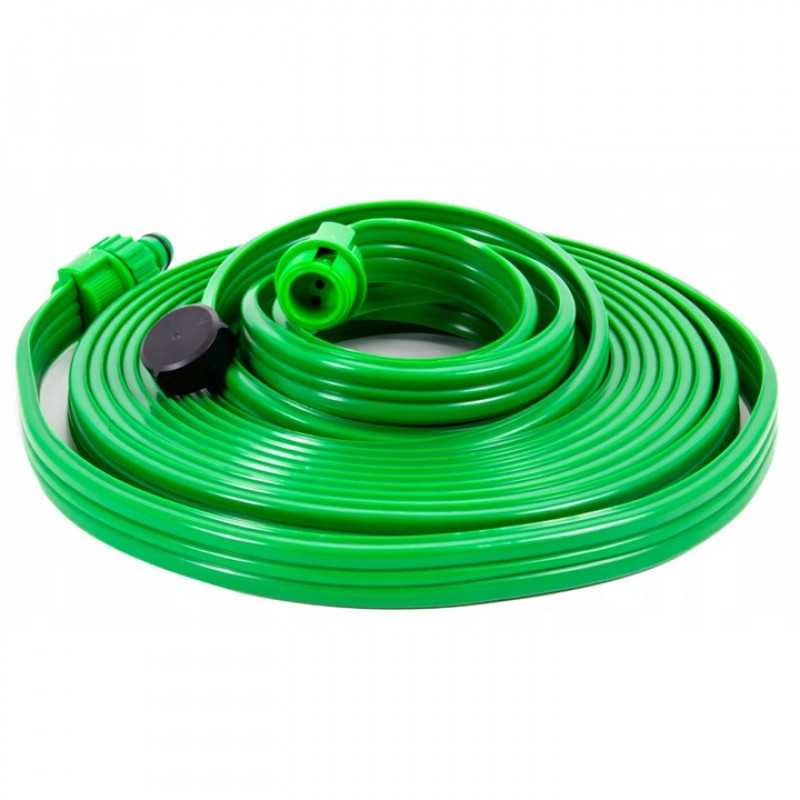 Scurta descriere: Furtunul de picurare este conceput pentru irigarea eficienta si economica a plantelor din gradina. Sistemul interior cu trei tuburi distribuie apa uniform pe toata lungimea furtunului, prin orificii mici dispuse la intervale regulate. Conectarea la sursa de apa se face rapid, iar apa este eliberata constant pentru hidratarea solului sau pentru pulverizarea usoara a plantelor.