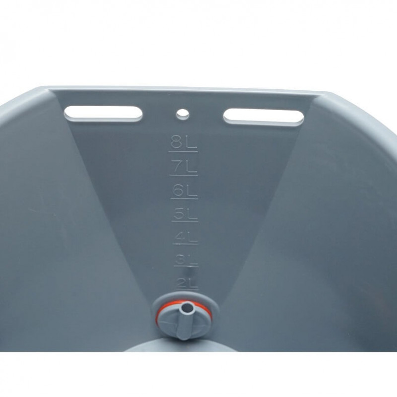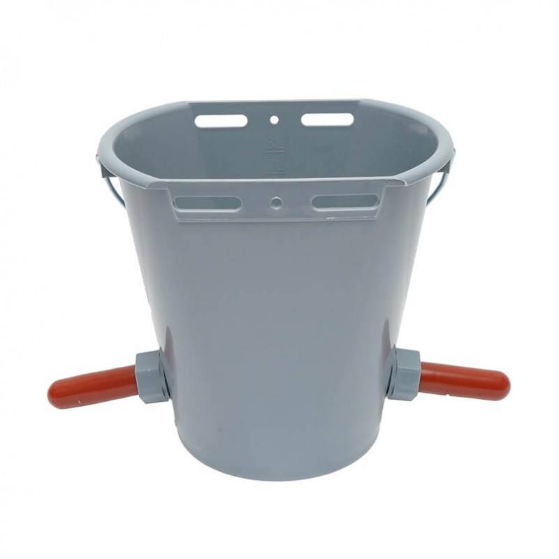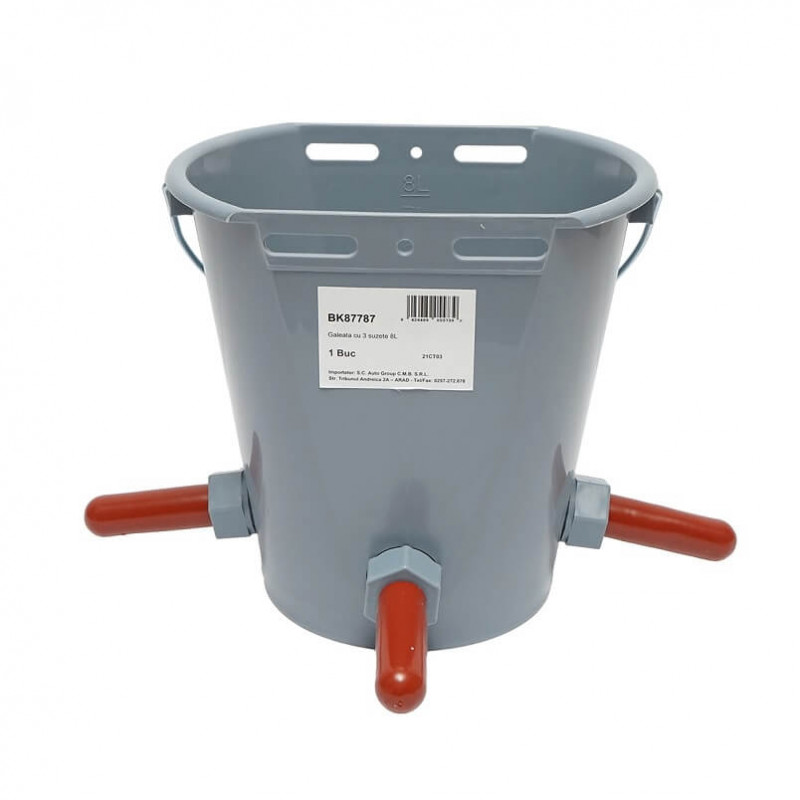 Galeata din plastic cu maner metalic pentru alaptare vitei cu capacitate de 8 litri, cu 3 suzete