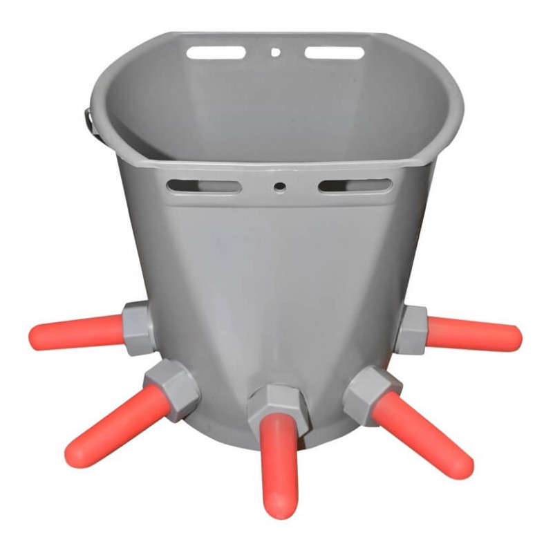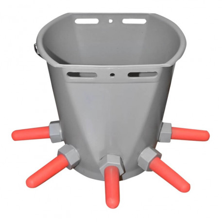 Galeata din plastic cu maner metalic pentru alaptare vitei cu capacitate de 8 litri, cu 3 suzete