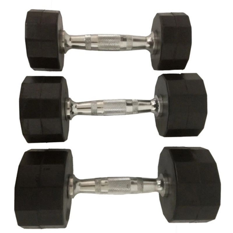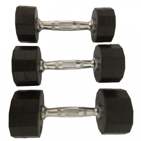 Gantera hexagonala realizata din poliuretan, are o durata de rezistenta mai mare decat cea realizata din cauciuc. Ganterele de acest tip sunt rezistente la umiditate, antiderapante si protejeaza podeaua la impactul cu aceasta. Forma hexagonala ofera o mai mare stabilitate si permite o depozitare usoara pe suport. Manerul cromat, ergonomic, este prevazut cu striatii antialunecare, pentru o aderenta mai buna.Greutati disponibile: 2.5, 5, 7.5, 10, 12.5, 15, 17.5, 20, 22.5, 25, 27.5, 30, 32.5, 35, 37.5, 40, 42.5, 45, 47.5, 50. Servesc nevoilor unui incepator, dar si exigentelor unui sportiv de performanta in ceea ce priveste eficienta antrenamentelor.Pretul este pe bucata.Producator: Dayu Fitness