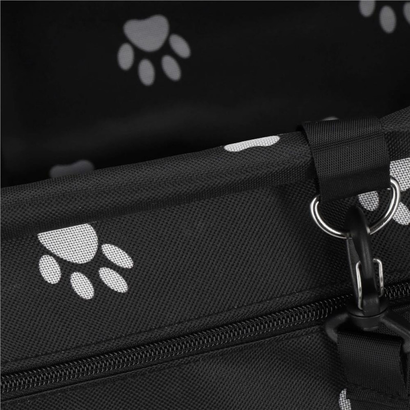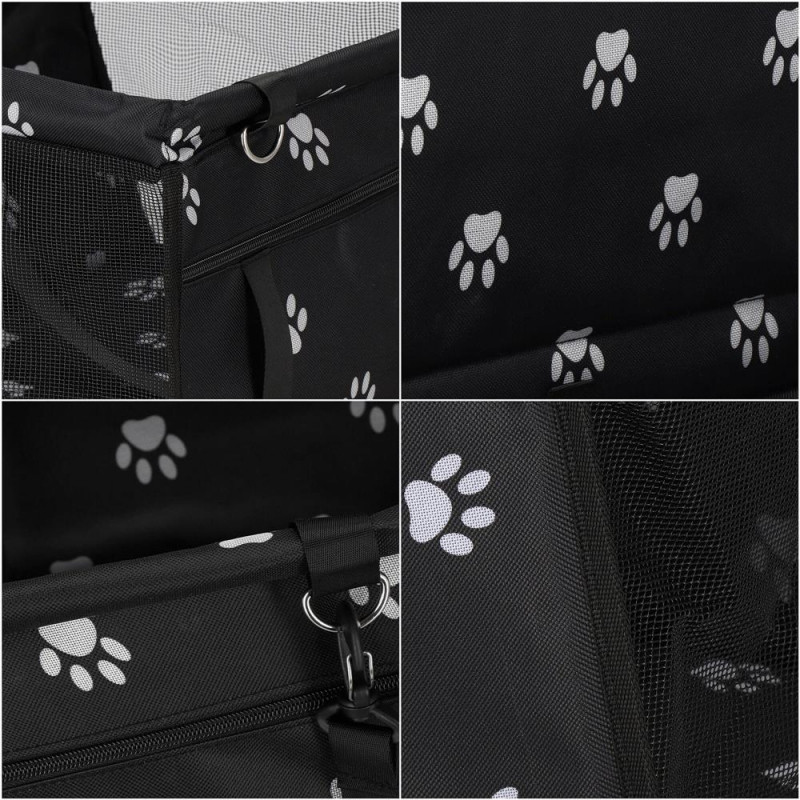Bare de rigidizare: diametru : 20 mm / lungime: 33 cm Scaunul pentru caini este un loc confortabil si sigur pentru animalul dvs. de companie atunci cand calatoriti in masina. Fabricat din poliester rezistent, de culoare neagra cu picioare de caine gri, acest scaun nu numai ca ofera confort, dar arata si elegant. Proiectat cu gandul la caracterul practic, scaunul are un buzunar situat in partea din fata, unde puteti depozita micile accesorii ale cainelui dumneavoastra. In plus, cele doua panouri laterale din plasa asigura o buna ventilatie si ii permit cainelui dvs. sa supravegheze imprejurimile in timpul calatoriei. Dimensiunea universala asigura ca se potriveste la majoritatea tipurilor de canapele auto. Asamblarea este rapida si usoara datorita curelelor reglabile care pot fi atasate la tetierele masinii. Materialul scaunului este usor de curatat, astfel incat pastrarea curateniei nu este o problema. In plus, scaunul este pliabil, ceea ce inseamna ca ocupa putin spatiu atunci cand nu este utilizat. De asemenea, scaunul este prevazut cu diferite lungimi ale curelei de fixare pentru a se potrivi diferitelor tipuri de canapele auto. Lungimea curelei de montare din fata (la scaunele din fata) variaza intre 76,5 cm si 142 cm, lungimea curelei de montare din spate (la tetiera canapelei) variaza intre 32 cm si 63 cm, iar lungimea curelei montate pe guler este de 40 cm. Scaunul pentru caini este solutia ideala pentru cei care calatoresc cu animalele de companie. Garantandu-le siguranta si confortul, scaunul va face din calatoriile cu masina o placere pentru acestia.