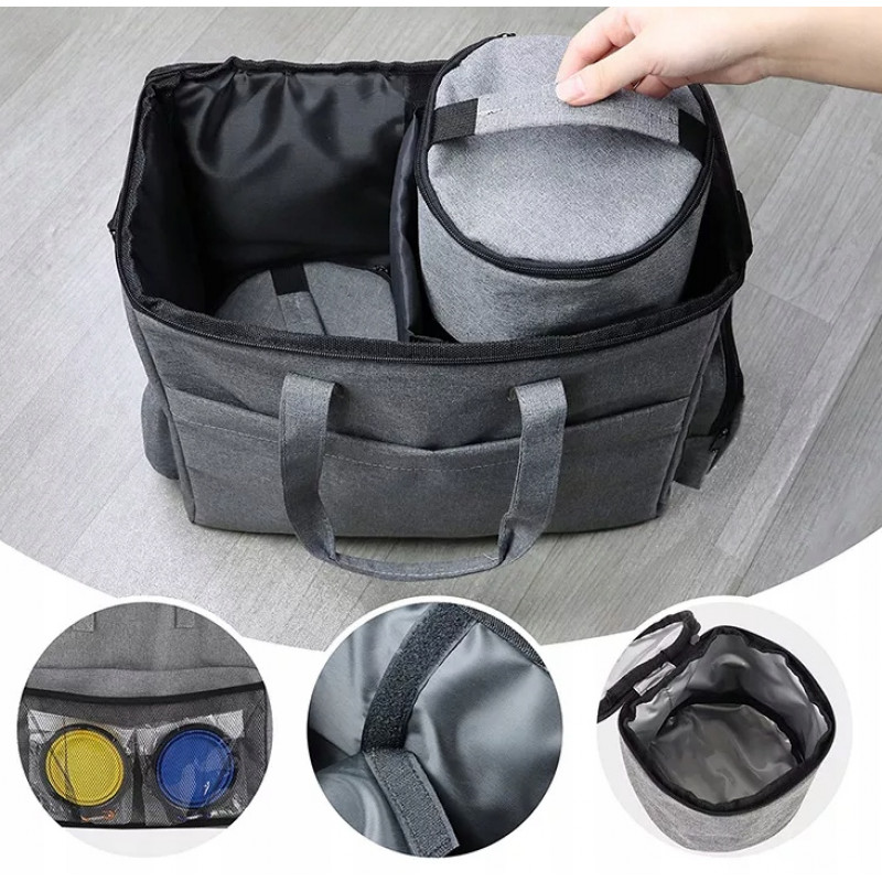 Organizator ideal pentru accesoriile esentiale atunci cand calatoriti cu animalul dvs. de companie Ideala pentru a calatori cu cainele sau pisica dumneavoastra. In interiorul sacosei veti gasi accesoriile necesare pentru calatoriile cu animalul dvs. de companie.