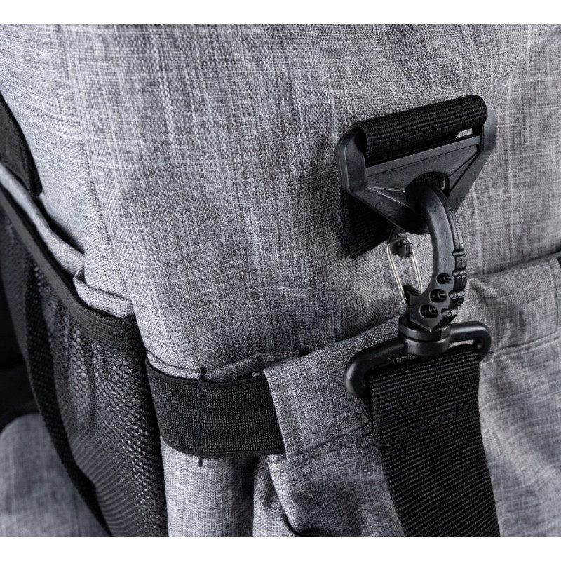 Echipata cu buzunare: buzunar mare frontal cu inchidere magnetica, suport pentru sticla de apa, buzunar lateral cu fermoar, buzunar interior cu fermoar cu plasa si compartiment interior detasabil