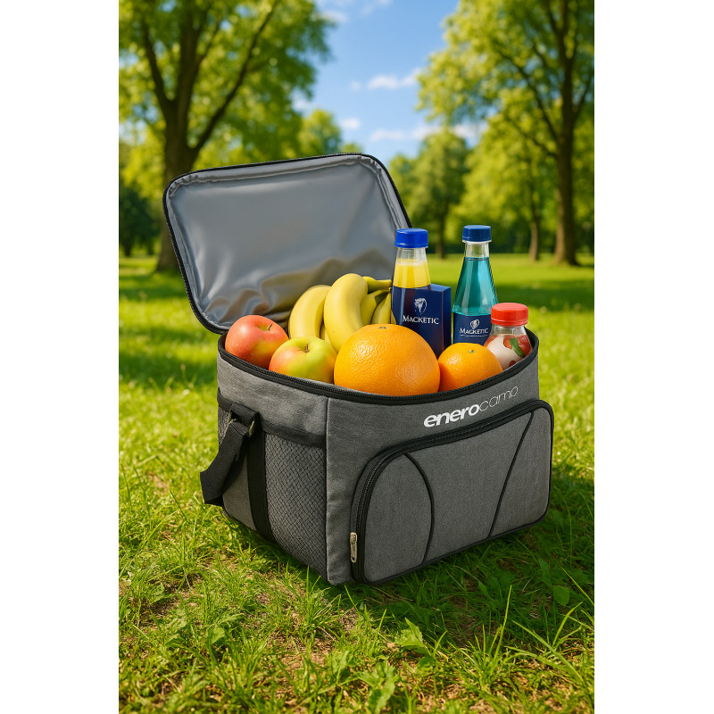Scurta descriere Aceasta geanta termica compacta de 18 litri este ideala pentru pastrarea alimentelor si bauturilor la temperatura dorita, fie rece, fie calda. Este usoara, rezistenta si echipata cu multiple buzunare, fiind companionul perfect pentru excursii, picnicuri si drumuri lungi.