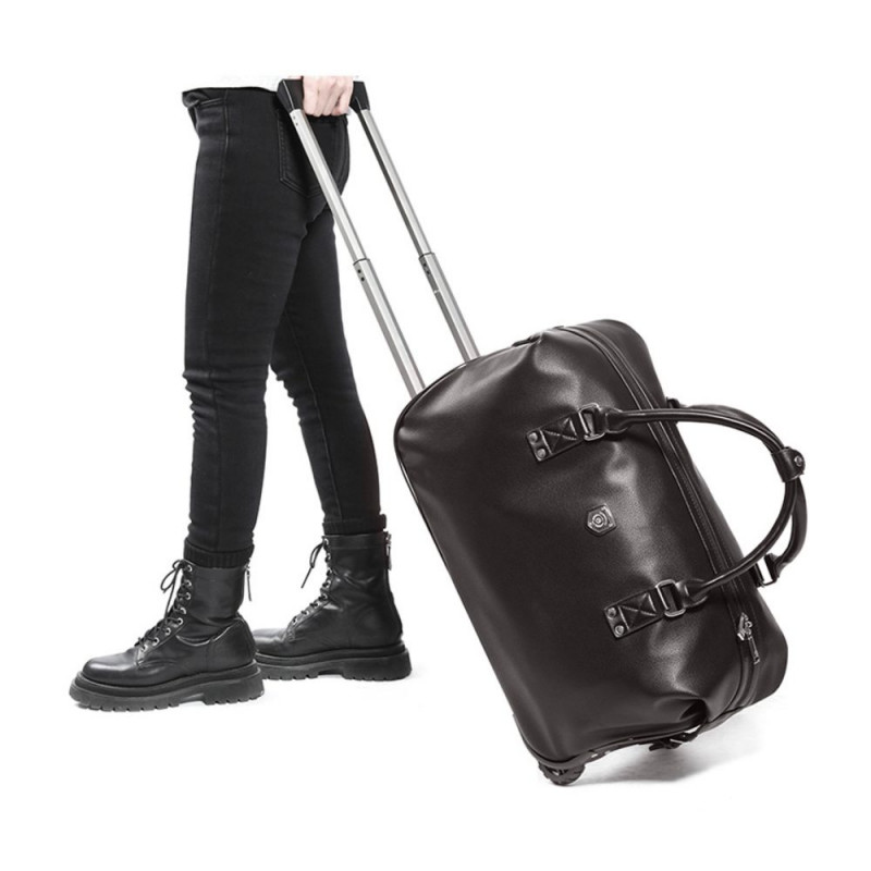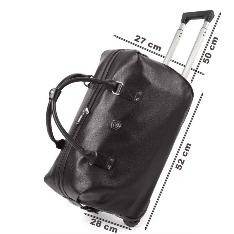 Aceasta geanta de voiaj cu role este utila pentru orice calatorie. Este foarte practica, confectionata din material piele ecologica, are un compartiment principal spatios. Geanta este prevazuta cu intaritura la baza, inchidere cu fermoar iar pentru prindere prezinta doua barete superioare care se prind cu o banda cu capsa. Dispune de un cadru puternic din aluminiu cu un maner telescopic cu buton de apasare, precum si manere de transport. Sistemul trolley este “ascuns” intr-un buzunar special, cu fermoar iar pentru sprijinirea bagajului, geanta are suporturi de plastic si doua role pentru transport usor. Geanta de voiaj se pliaza plat pentru o depozitare usoara, este usoara si durabila, facand-o perfecta pentru calatorii lungi si scurte deopotriva. Compartimentul principal poate fi accesat printr-un fermoar la indemana si poate fi folosit pentru a transporta haine si alte obiecte personale in siguranta. Geanta are tampoane care maresc inaltimea, pentru durabilitate maxima si protectie impotriva deteriorarii. Geanta cu role poate fi folosita ca geanta de calatorie, bagaj, geanta de sport, geanta de sport, geanta de camping, geanta de depozitare sau pentru multe alte ocazii cand calatoriti sau la cumparaturi.