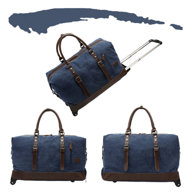 Aceasta geanta de voiaj cu role este utila pentru orice calatorie. Este foarte practica, confectionata dintr-un material textil usor si rezistent, are un compartiment principal spatios si doua buzunare exterioare cu fermoare. Geanta este prevazuta cu intaritura la baza, inchidere cu fermoar iar pentru prindere prezinta doua barete superioare care se prind cu o banda cu capsa. Dispune de un cadru puternic din aluminiu cu un maner telescopic cu buton de apasare, precum si manere de transport. Sistemul trolley este “ascuns” intr-un buzunar special, cu fermoar iar pentru sprijinirea bagajului, geanta are suporturi de plastic si doua role pentru transport usor. Geanta de voiaj se pliaza plat pentru o depozitare usoara, este usoara si durabila, facand-o perfecta pentru calatorii lungi si scurte deopotriva. Compartimentul principal poate fi accesat printr-un fermoar la indemana si poate fi folosit pentru a transporta haine si alte obiecte personale in siguranta. Geanta are tampoane care maresc inaltimea, pentru durabilitate maxima si protectie impotriva deteriorarii. Geanta cu role poate fi folosita ca geanta de calatorie, bagaj, geanta de sport, geanta de sport, geanta de camping, geanta de depozitare sau pentru multe alte ocazii cand calatoriti sau la cumparaturi.