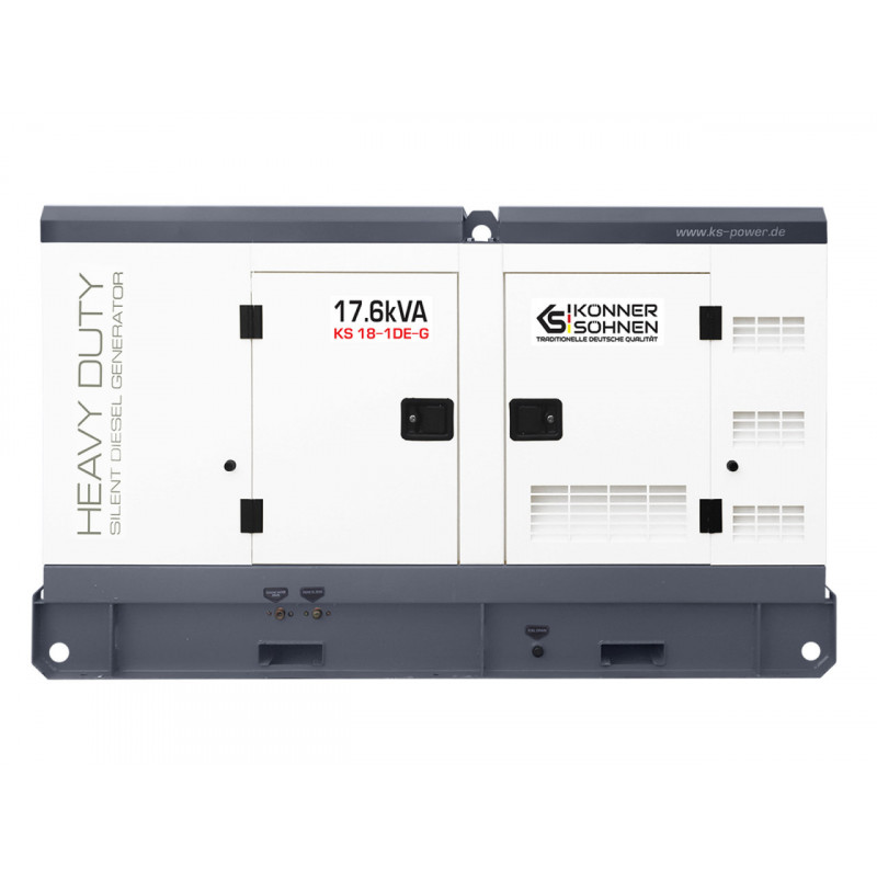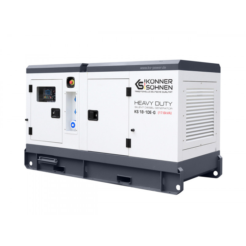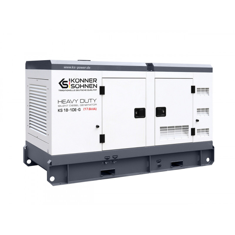 Genetatorul diesel de curent monofazat KS 18-1DE-G din seria HEAVY DUTY a mărcii germane „Könner & Söhnen” este un grup electrogen de încredere, cu o capacitate maximă de 17,6 kVA.