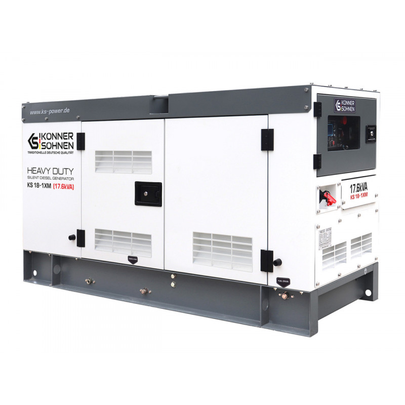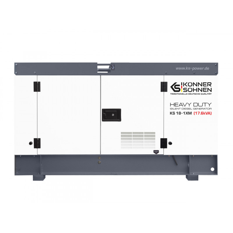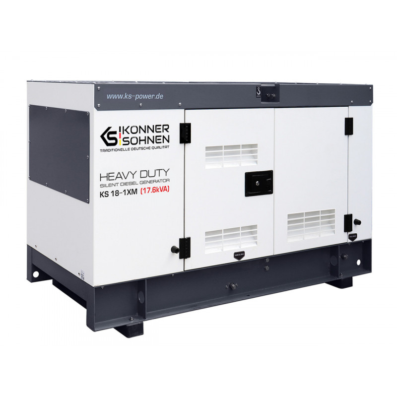 Generatorul diesel de curent monofazat KS 18-1XM din seria HEAVY DUTY a mărcii germane „Könner & Söhnen” este un grup electrogen de încredere, cu o capacitate maximă de 17,6 kVA.