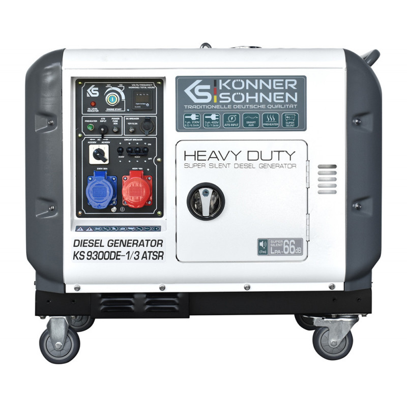 Generatorul diesel seria KS 9300DE-1/3 ATSR a mărcii germane „Könner & Söhnen” este o alegere excelentă ca sursă de alimentare de rezervă. Echipat cu o carcasă insonorizata, acest model este ideal pentru magazine mici, cafenele, restaurante și este deosebit de popular printre proprietarii de case private, unde datorităm întreruperilor frecvente de curent, o sursa de alimentare de urgență este o necesitate.