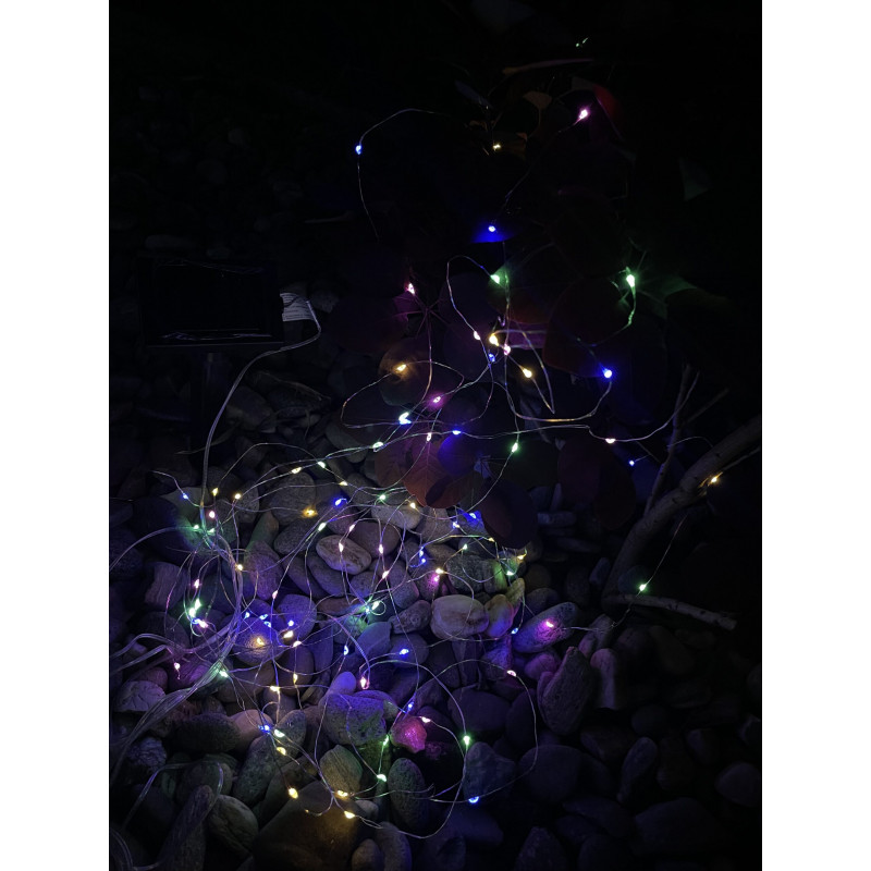 100 de leduri Ghirlanda luminoasa decorativa este solutia perfecta pentru gradina ta! Perfecta ca decor de copaci, arbusti in gradina sau pe terasa. Subliniaza si completeaza arhitectura gradinii, printre altele iazuri sau compozitii vegetale. Ghirlanda este alimentata de energie solara. Panoul solar are 2 butoane: ON/OFF si se fixeaza pe sol folosind tarusul inclus sau se poate monta pe perete. Este realizata din material durabil, ceea ce contribuie la durabilitate si viata lunga.In plus fata de avantajul sau practic incontestabil, cu siguranta va face mai atractiva petrecerea timpului in aer liber cu familia, prietenii sau singuri.