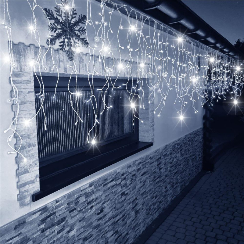 Perdeaua de lumina de gheata este una dintre cele mai frumoase decoratiuni de Craciun. Acestea vor fi decorul perfect pentru hol, balcon sau gard. Lampile creeaza o atmosfera unica de Craciun. Principalul avantaj este calitatea inalta a manoperei si durabilitatea produsului. Lampile sunt compatibile, ceea ce inseamna ca le puteti combina in seturi. Seturile cu telecomanda pot fi combinate cu seturile fara telecomanda. Un programator poate opera mai multe seturi. Conectorii ermetici au clasa de etansare IP44, ceea ce inseamna ca sunt adaptati pentru utilizare in exterior fara a fi nevoie de izolatie suplimentara. Butonul controlerului este sigilat, cauciucat. Firul gros de cupru este rezistent la rupere sau la temperaturi scazute.