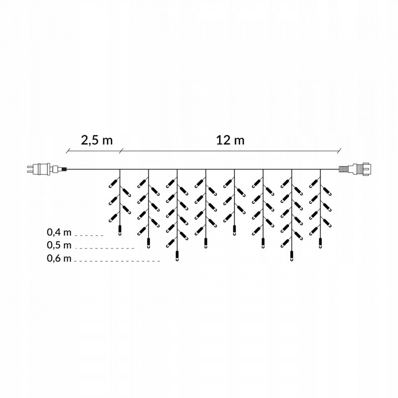 Lungimea ghetului: 0,4 / 0,5 / 0,6 m Lampi de gheata 300 micro LED-uri Alimentare 220-240v LED-uri economice de energie Alimentat electric Arderea unei diode nu opreste setul!Diodele impermeabile - pot fi scufundate in apa - fara alimentare Lampi pe fire de cupru durabile cu diametrul de 1,3 mm, rezistente la rupere CE, certificat Ro HSClasa de etanseitate IP44 Utilizare externa si interna Posibilitatea de a conecta pana la 3 bucati de lanturi usoare suplimentare Perdeaua de lumina are un program de iluminare cu 8 functii: