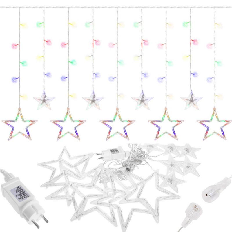 Latimea stelelor: 9,5 si 18,5 cm138 LED-uri Sursa de alimentare 220-240v LED-uri cu economie de energie Alimentat electric Arderea unui LED nu opreste setul!Diode rezistente la apa - pot fi scufundate in apa - fara alimentare Lampi pe fire de cupru durabile cu diametrul de 1,3 mm, rezistente la rupere Certificat CE, Ro HSClasa de etanseitate IP44 Utilizare externa si interna Posibilitatea de a conecta pana la 3 bucati de lanturi usoare suplimentare MAGIA ILUMINARII DE CARACIUN Perdeaua LED arata grozav pe un brad de Craciun, fereastra, arbusti din gradina sau agatata pe o balustrada de balcon. Sunt accentul perfect pentru a introduce o dispozitie festiva in jurul tau. Datorita unei game largi de culori, o poti gasi pe cea perfecta pentru tine, pentru a-ti decora casa, gradina sau compania. Lasa-te purtat de atmosfera de sarbatoare si fa ca sarbatorile sa fie speciale pentru tine si familia ta. Perdeaua noastra se caracterizeaza prin inalta calitate si manopera. Le poti folosi atat acasa, cat si afara. Functioneaza excelent chiar si in jurul fulgilor de zapada care cad.Perdeaua este un set de lumini interconectate care fac senzatie nu doar de sarbatori, ci si de alte sarbatori, ca ornament pentru copaci, arbusti sau chiar suprafete plane. Deoarece acopera o suprafata mare, dau multa lumina si in acelasi timp creeaza o atmosfera unica.Conectorii ermetici au clasa de etanseitate IP44, ceea ce inseamna ca sunt adaptati pentru utilizare in exterior fara a fi nevoie de izolatie suplimentara. Butonul controlerului este sigilat, cauciucat. Sarma groasa de cupru este rezistenta la rupere sau la temperaturi scazute. Lampile de la licitatiile noastre sunt compatibile, ceea ce inseamna ca le puteti combina in seturi.Conectorii ermetici au clasa de etanseitate IP44, ceea ce inseamna ca sunt adaptati pentru utilizare in exterior fara a fi nevoie de izolatie suplimentara. Butonul controlerului este sigilat, cauciucat. Sarma groasa de cupru este rezistenta la rupere sau la temperaturi scazute.In plus, luminile sunt mai sigure decat lampile traditionale, deoarece LED-urile sunt alimentate de o tensiune joasa sigura obtinuta de la un transformator (adica o sursa de alimentare care reduce tensiunea de la retea la cativa volti), acesta este marcat pe ambalaj ca LOW VOLTAJ. Drept urmare, LED-urile nu se incalzesc si pot fi atinse in siguranta. De asemenea, nu exista riscul de electrocutare daca sirul de lampi este deteriorat, de exemplu, in timpul depozitarii, cand a fost infasurat incorect sau, in cazul plasticului deteriorat, dupa multi ani de utilizare. Perdeaua de lumina are un program de iluminare cu 8 functionalitati: combinatie,val,secventa,lent-glo,clipireschimbare lenta a culorii,sclipirelumina constanta