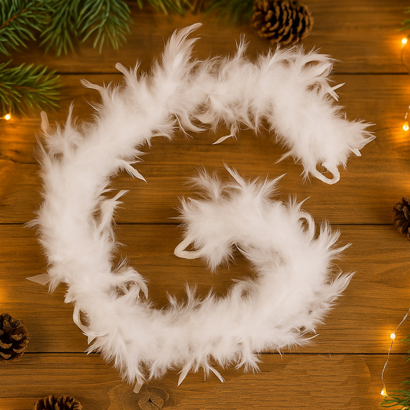 Scurta descriere Boa-ul decorativ alb din pene naturale si bumbac aduce o nota eleganta oricarei tinute sau decoratiuni. Perfect pentru evenimente festive, petreceri tematice sau decorul de Craciun, acest accesoriu rafinat impresioneaza prin textura moale si aspectul delicat.