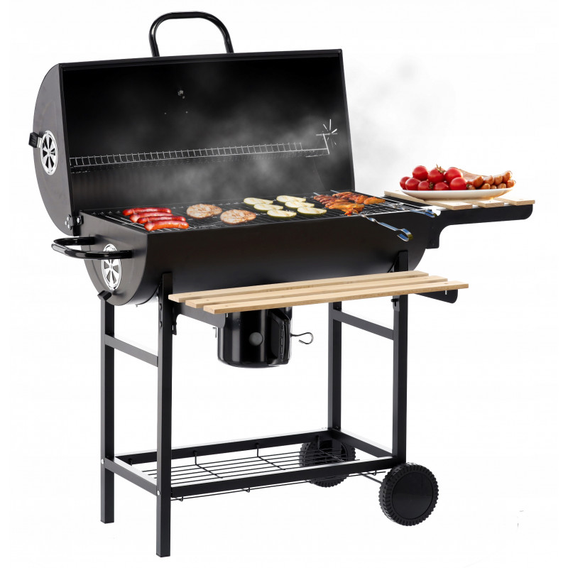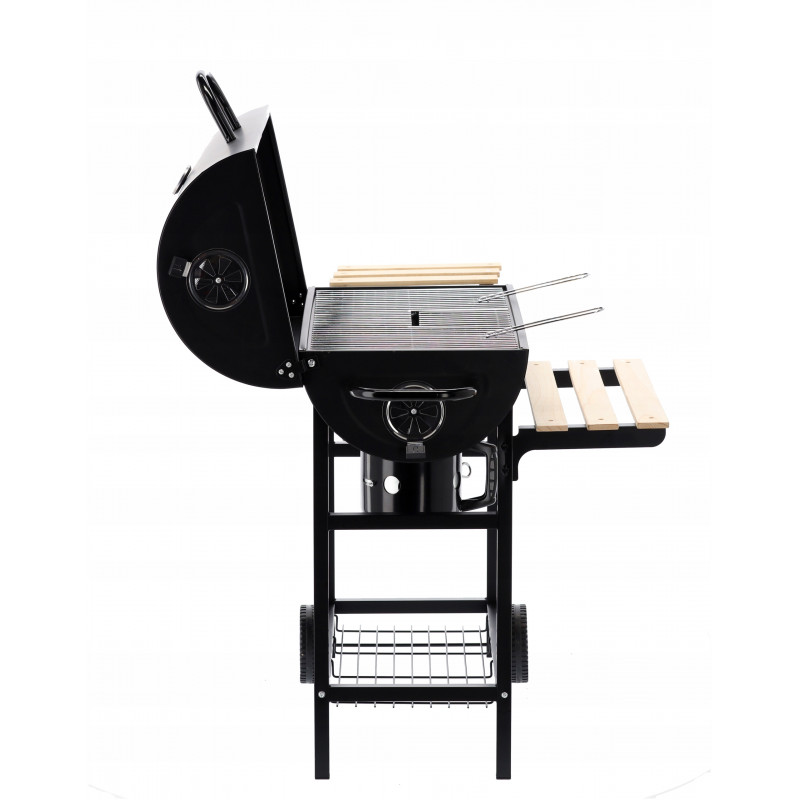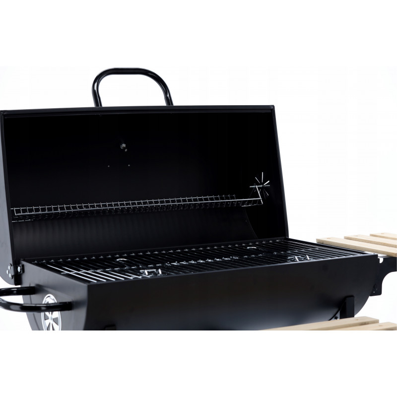 GRATAR PE ROTISezonul gratarelor este in plina desfasurare! Cea mai buna distractie si senzatiile gustative de neuitat nu pot trece pe langa tine. Un gratar din fonta cu carbuni este o alegere excelenta pentru orice iubitor de gratare delicioase in aer liber. Datorita capacului blocabil, caldura actioneaza si asupra alimentelor gatite de sus, asigurand o incalzire uniforma si permitandu-va sa va gatiti perfect mancarea. O caracteristica incredibila este faptul ca gratarul va va ajuta sa va organizati masa oriunde datorita rotilor suplimentare. SPECIFICATII Doua rafturi laterale din lemn;Raft sub gratar pentru lemne/ carbuni;Gratar cromat care masoara 70x35cm;Gratar de incalzire care masoara 74x15,3cm;Focar care masoara 74x39cm;Guri de aerisire reglabile;Termometru in capac Gratarul este dotat cu o scrumiera practica sub forma unui sertar extensibil. Acesta va permite sa indepartati cenusa in siguranta fara a scoate gratarele. Acest lucru va reduce riscul oricaror arsuri.MOBILITATEGratarul este echipat cu doua roti din materiale robuste. Acestea ii vor permite sa fie pozitionat in siguranta oriunde in gradina. In plus, gratarul include un raft practic, ceea ce il face si mai functional.HOTE DE VENTILATIEGratarul nostru are deschideri de ventilatie in capacul si corpul gratarului, astfel incat puteti regla cu precizie cantitatea de aer care curge direct in focar, precum si din partea superioara. Un termometru in capacul gratarului va permite sa controlati temperatura, astfel incat mancarea dvs. sa fie gatita la perfectie. Cu ajutorul termometrului care arata temperatura curenta din gratar, aveti control deplin asupra intregului proces de gratar.GRATARE PLIABILEGratarul este echipat cu doua rafturi pliabile, ceea ce il face extrem de functional. Rafturile suplimentare vor facilita gratarul. Constructia robusta va pastra alimentele inainte sau dupa procesul de prajire.