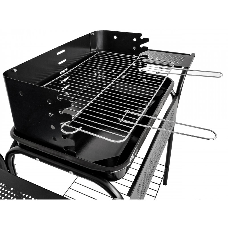 Scurta descriere Grill-ul de gradina este partenerul ideal pentru preparate savuroase in aer liber. Prevazut cu un gratar cromat generos si reglaj pe 5 nivele, asigura gatirea perfecta a carnii si legumelor. Constructia metalica este solida si stabila, iar rotile ofera mobilitate usoara. Cu 3 rafturi practice, ai totul la indemana pentru o experienta de grill eficienta si comoda.
