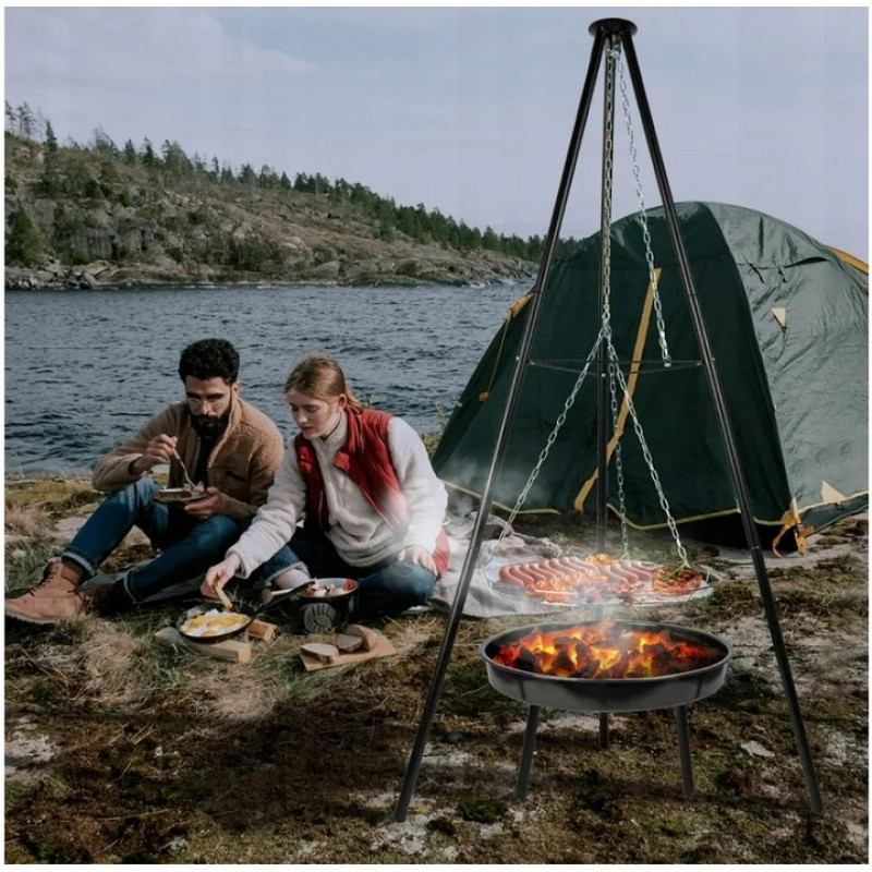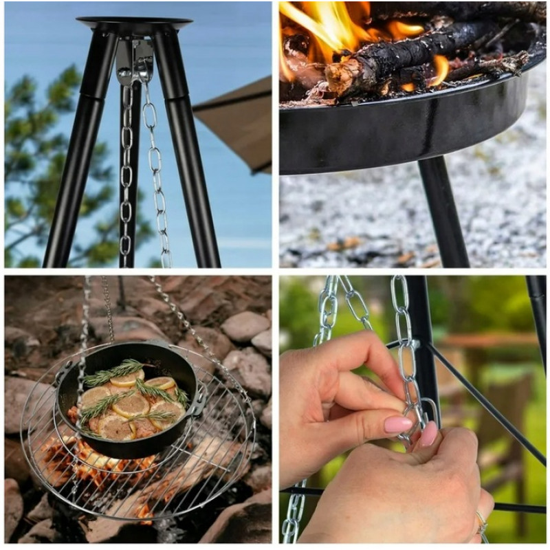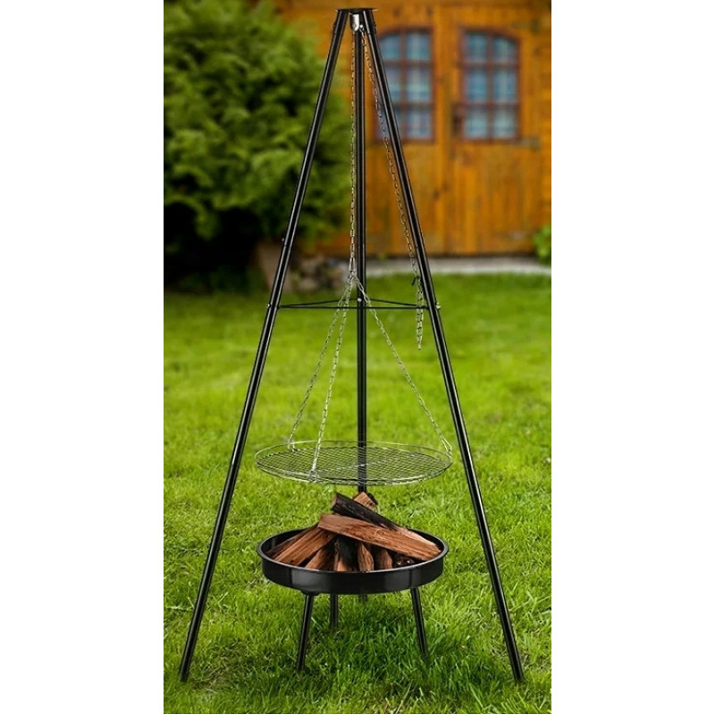 Caminul – nu este atasat permanent la intreaga structura, astfel incat, ori de cate ori aveti chef, il puteti folosi separat si puteti crea un foc de tabara, sigur deasupra, de exemplu puteti sa praji carnati pe bete. Componentele sunt fabricate din otel acoperit cu smalt rezistent la caldura. Caminul poate rezista cu usurinta la temperaturi ridicate sustinute si la prezenta unui foc. Gratarul, este fabricat din otel cromat, care protejeaza, de asemenea, impotriva temperaturilor ridicate. Cu suprafata sa neagra combinata cu argintiu, gratarul se potriveste in orice mediu, chiar si in cel mai pretentios. Ambalajul mic permite ca unitatea sa fie depozitata in afara sezonului, fara a ocupa mult spatiu.