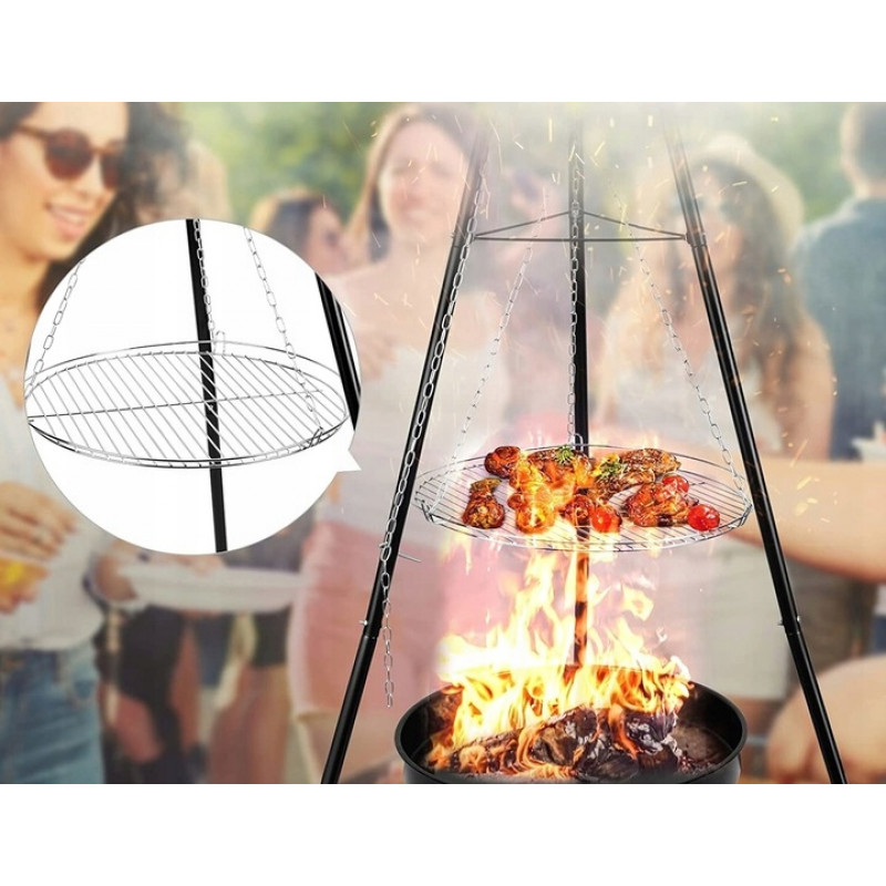 Grosimea gratarului: 3 mm Afara este din ce in ce mai frumos, iar mirosul de gratar ajunge deja tot mai des la noi. Este timpul ca si dumneavoastra sa incepeti sezonul gratarelor cu un gratar nou si imbunatatit! Mecanismul instalat va permite sa modificati usor si rapid inaltimea gratarului de deasupra semineului. Acest lucru va permite sa reglati timpul si gradul de rumenire, precum si sa mentineti temperatura produselor. Daca aveti nevoie sa adaugati lemne in focar, nu trebuie sa riscati sa apucati gratarul fierbinte pentru a-l indeparta. Pur si simplu ridicati gratarul cu ajutorul lantului pentru a asigura accesul convenabil la corpul de foc.