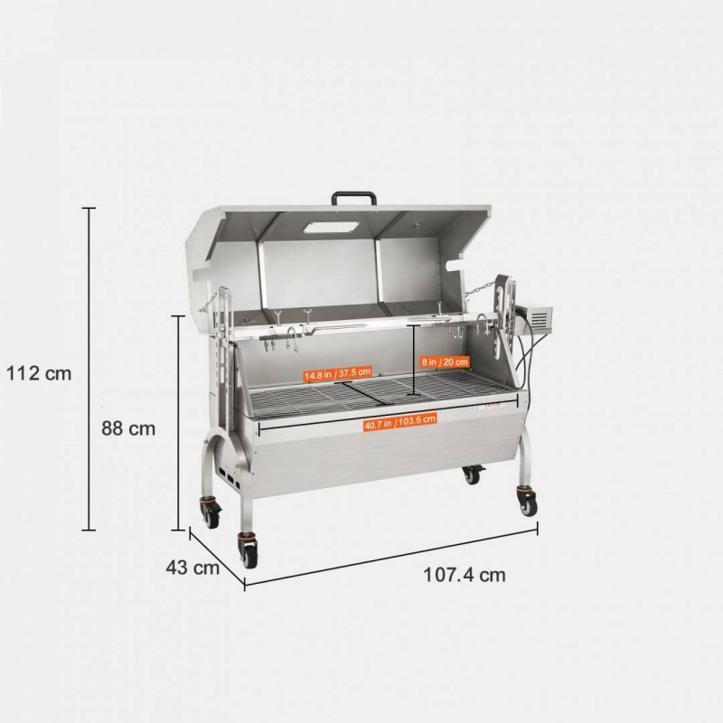 capabil sa rasuceasca sarcini de pana la kg. Suprafata mare gratar: 103,5x37,5
