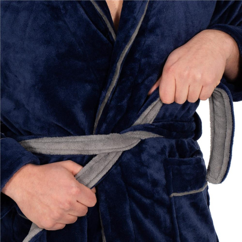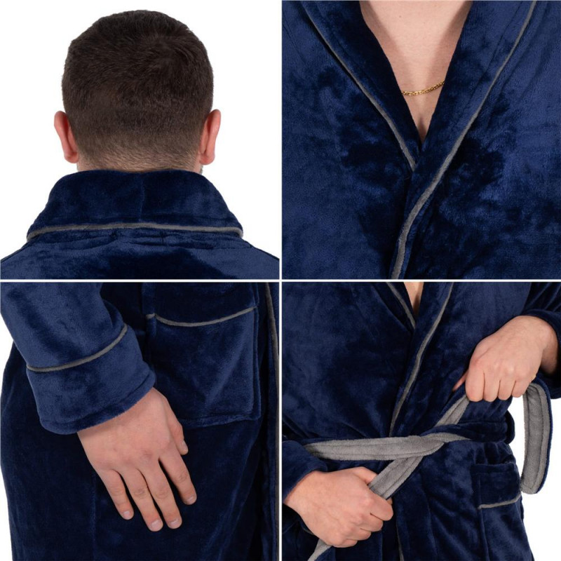 Ridicarea dispozitiei - purtarea halatului nostru de baie va poate ajuta sa va imbunatatiti starea de spirit, oferind un sentiment de placere. Halatul nostru de baie nu numai ca va va fermeca prin aspectul sau placut, dar va va oferi si o functionalitate nepretuita. Datorita buzunarelor frontale practice, veti avea intotdeauna loc pentru telefon, telecomanda sau obiecte mici. In plus, este prevazut cu o curea practica in talie, permitand o potrivire perfecta. Halatul de baie pentru barbati va deveni partea preferata a ritualului tau zilnic de relaxare. Asortati-l cu ceaiul sau cartea preferata si simtiti cum fiecare zi devine putin mai speciala.