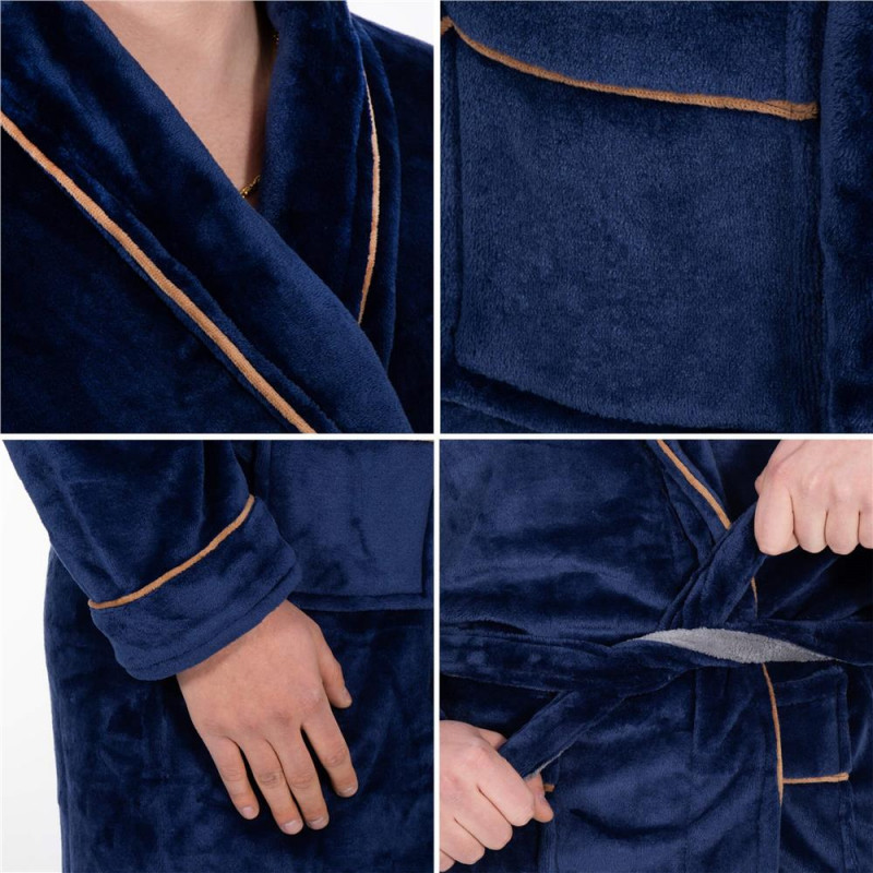 Ridicarea dispozitiei - purtarea halatului nostru de baie va poate ajuta sa va imbunatatiti starea de spirit, oferind un sentiment de placere. Halatul nostru de baie nu numai ca va va fermeca prin aspectul sau placut, dar va va oferi si o functionalitate nepretuita. Datorita buzunarelor frontale practice, veti avea intotdeauna loc pentru telefon, telecomanda sau obiecte mici. In plus, este prevazut cu o curea practica in talie, permitand o potrivire perfecta. Halatul de baie pentru barbati va deveni partea preferata a ritualului tau zilnic de relaxare. Asortati-l cu ceaiul sau cartea preferata si simtiti cum fiecare zi devine putin mai speciala.