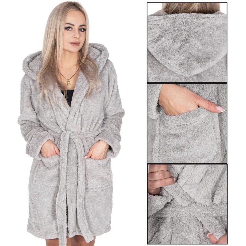 Puncte forte: 2 buzunare incapatoare, gluga mare, curea de prindere in talie, Halatul de baie va va permite sa va bucurati de materialul placut si moale, asemanator plusului. Acesta a fost creat din fibre de inalta calitate, asigurand confort la fiecare pas.