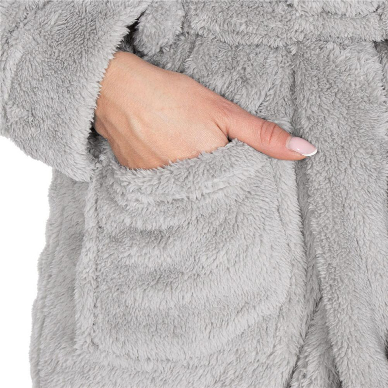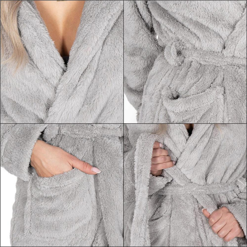 Ridicarea dispozitiei - purtarea halatului nostru de baie va poate ajuta sa va imbunatatiti starea de spirit, oferind un sentiment de placere. Halatul nostru de baie nu numai ca va va fermeca prin aspectul sau placut, dar va va oferi si o functionalitate nepretuita. Cu o gluga care adauga o nota eleganta si buzunare frontale practice, veti avea intotdeauna loc pentru telefon, telecomanda sau obiecte mici.. In plus, este prevazut cu o curea practica in talie, permitand o potrivire perfecta. Halatul de baie va deveni partea preferata a ritualului tau zilnic de relaxare. Asortati-l cu ceaiul sau cartea preferata si simtiti cum fiecare zi devine putin mai speciala.
