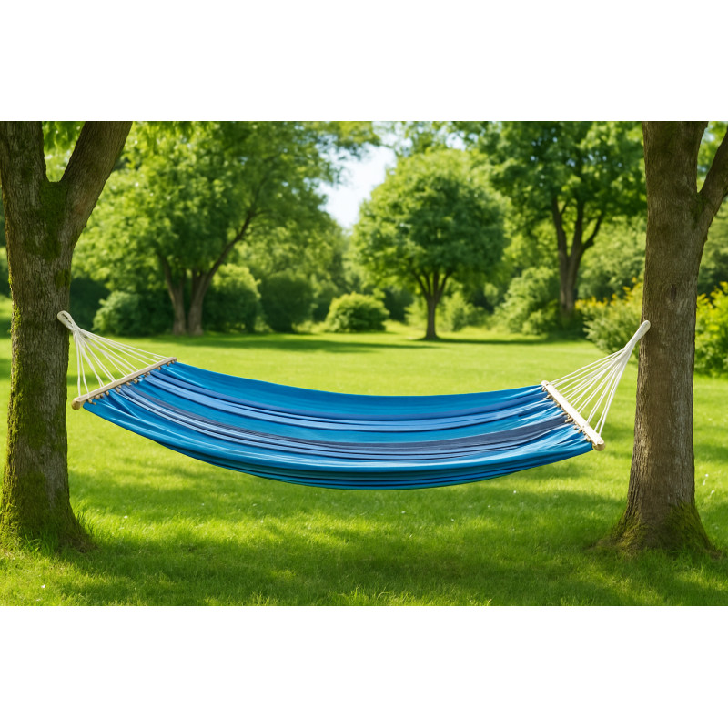Scurta descriere Acest hamac este alegerea perfecta pentru o dupa-amiaza de vara linistita, petrecuta in gradina. Este confectionat dintr-un material textil gros si aerisit, care permite circulatia aerului si previne disconfortul termic. Bara din lemn asigura o pozitie stabila si confortabila, iar montarea este extrem de simpla – se prinde usor intre doi copaci sau stalpi. Fiind usor si compact, il poti lua cu tine oriunde ai nevoie de o clipa de relaxare.