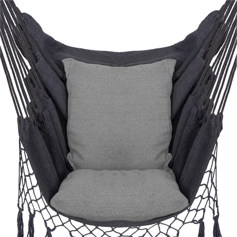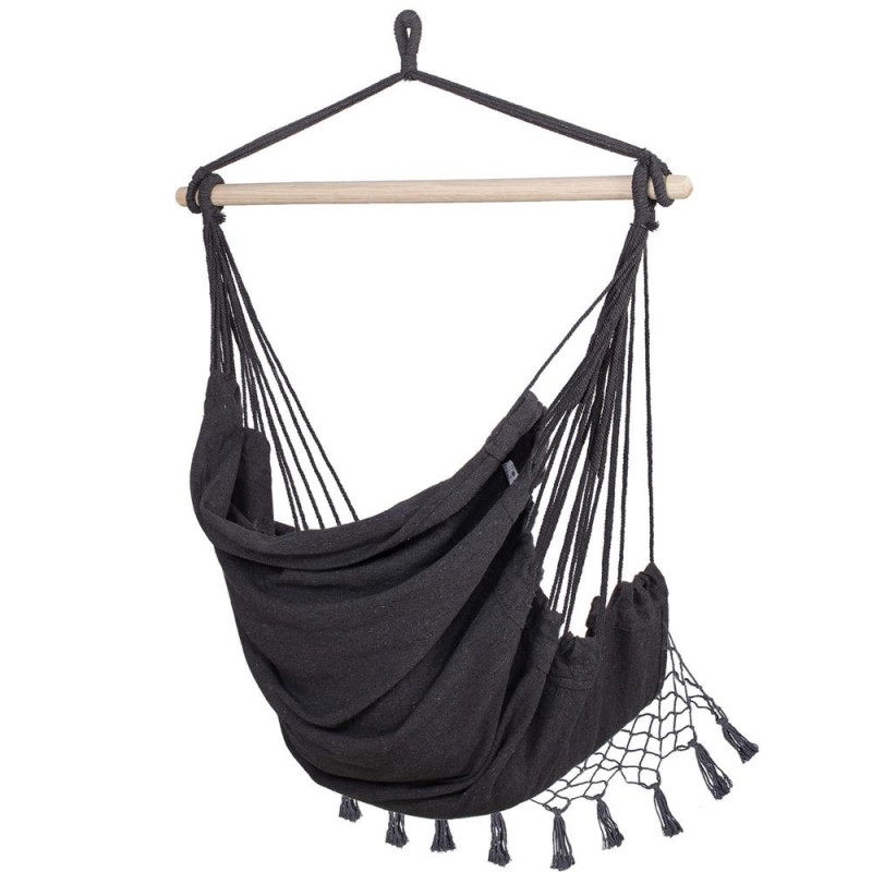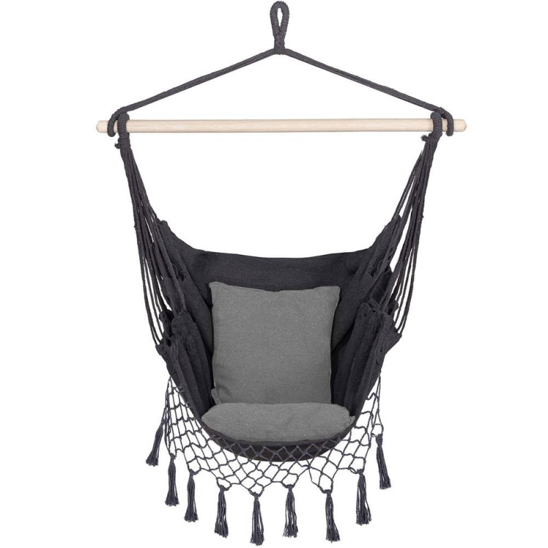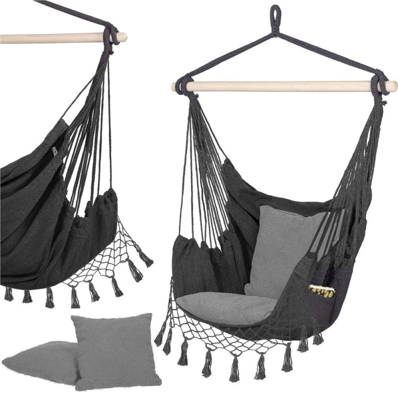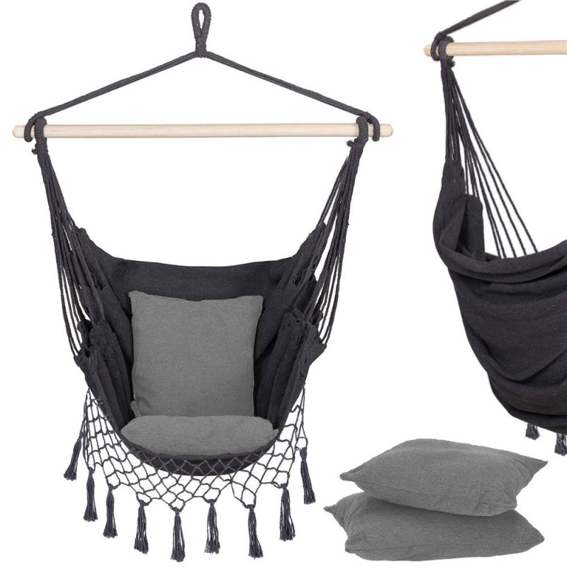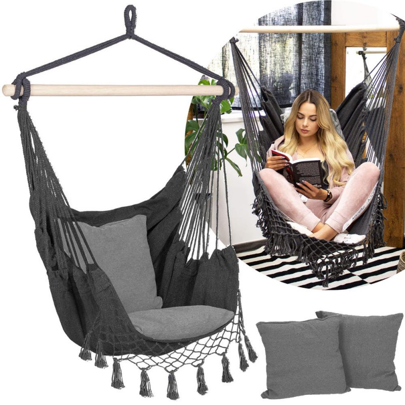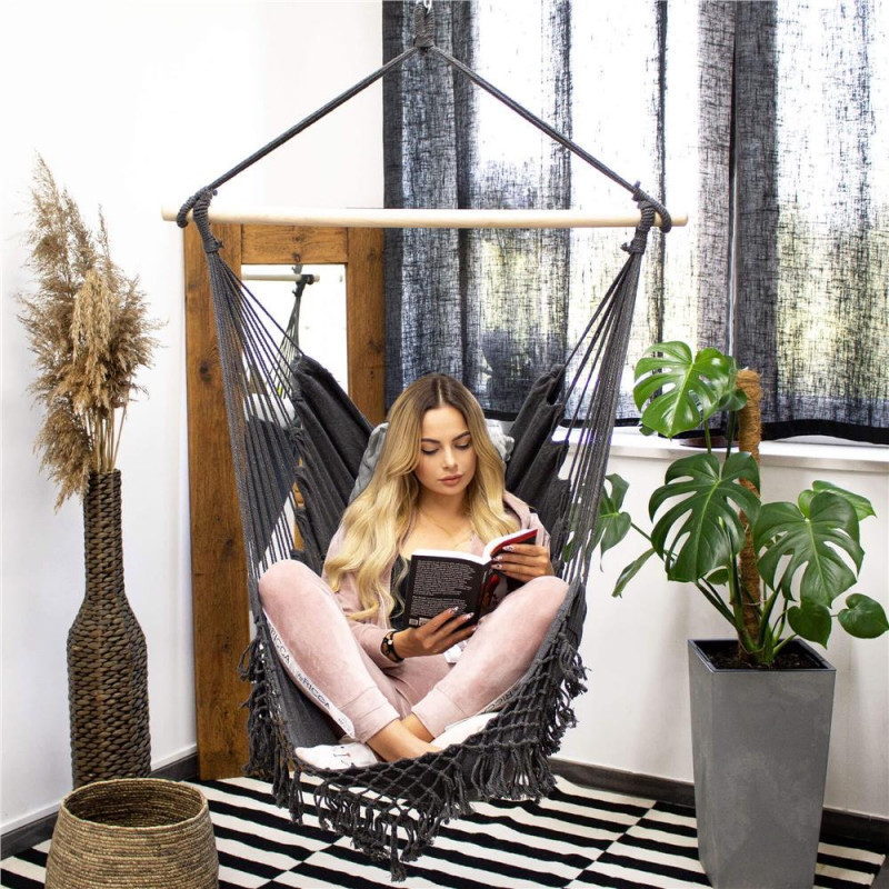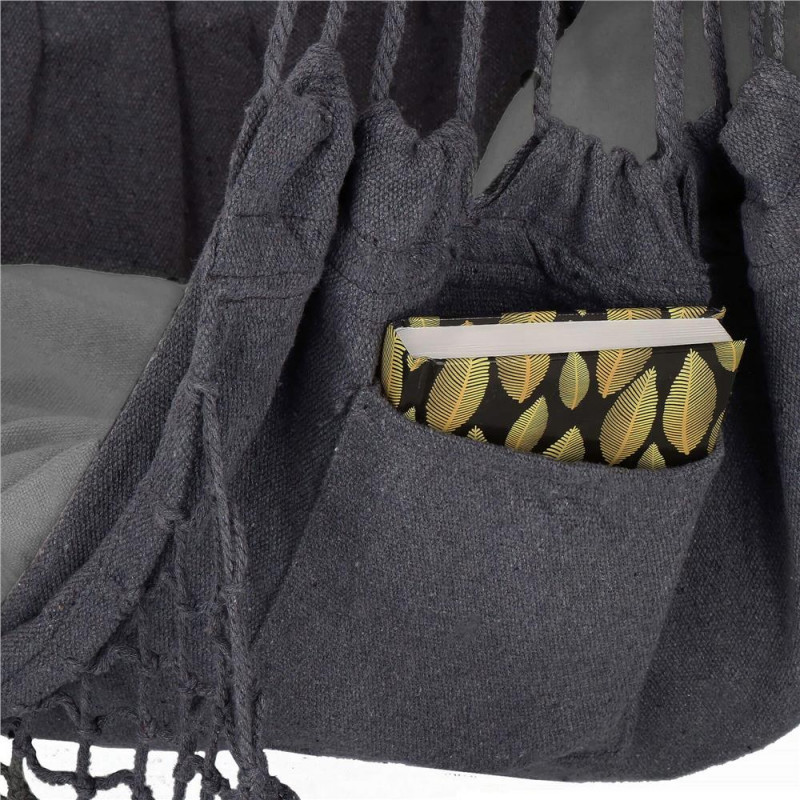 Perne: 45 x 45 cm Fotoliul suspendat se potriveste in majoritatea amenajarilor din gradina, de pe terasa, sau din interiorul casei – in camera de zi sau in camera copiilor. Le va oferi copiilor o joaca sigura si plina de distractie, iar adultilor o relaxare fericita. Acesta are un scaun si un spatar confortabil si moale, realizat din bumbac natural cu o usoara atingere de fibre sintetice. Acest lucru il face nu numai placut la atingere, ci si durabil. Datorita materialelor de cea mai buna calitate, produsul nostru poate rezista la o sarcina de pana la 150 kg, astfel incat persoanele de toate varstele se vor putea bucura de
