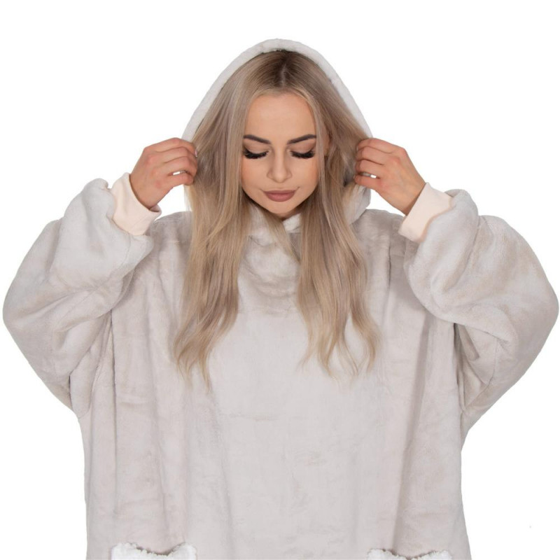 Scurta descriere: Hanoracul tip patura oversize este alegerea ideala pentru confort maxim in zilele reci. Realizat din poliester moale si pufos, cu interior placut la atingere, ofera caldura si libertate de miscare. Gluga mare si buzunarele frontale adauga un plus de functionalitate si stil.