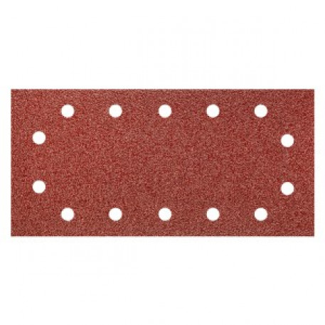 Smirghel GRAPHITE (ref. 55H720) 115 x 230 mm, gradatie 40, cu gauri. Dedicata slefuirii lemnului, a materialelor pe baza de lemn, a metalelor si a materialelor plastice. Hartia este fabricata din hartie de tip E pentru slefuirea masinilor si are o structura semi-deschisa cu o acoperire de 80-90% a granulelor abrazive (electrocorindon), ceea ce garanteaza o munca mai eficienta si reduce riscul de infundare. Fixarea de tip Velcro permite inlocuirea rapida a hartiei folosite. Produsul este conceput pentru a fi utilizat cu slefuitoarele orbitale. Marca GRAPHITE ofera o gama larga de scule electrice pentru a satisface nevoile profesionistilor.