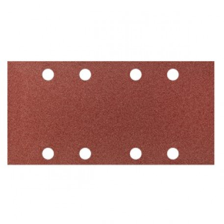Hartie de slefuit GRAPHITE (ref. 55H740) 93 x 185 mm, granulatie 120, cu gauri. Dedicata slefuirii lemnului, a materialelor pe baza de lemn, a metalelor si a materialelor plastice. Hartia este fabricata din hartie de tip E pentru slefuirea masinilor si are o structura semi-deschisa cu o acoperire de 80-90% a granulelor abrazive (electrocorindon), ceea ce garanteaza o munca mai eficienta si reduce riscul de infundare. Fixarea de tip Velcro permite inlocuirea rapida a hartiei folosite. Produsul este conceput pentru a fi utilizat cu slefuitoarele orbitale. Marca GRAPHITE ofera o gama larga de scule electrice pentru a raspunde nevoilor profesionale.