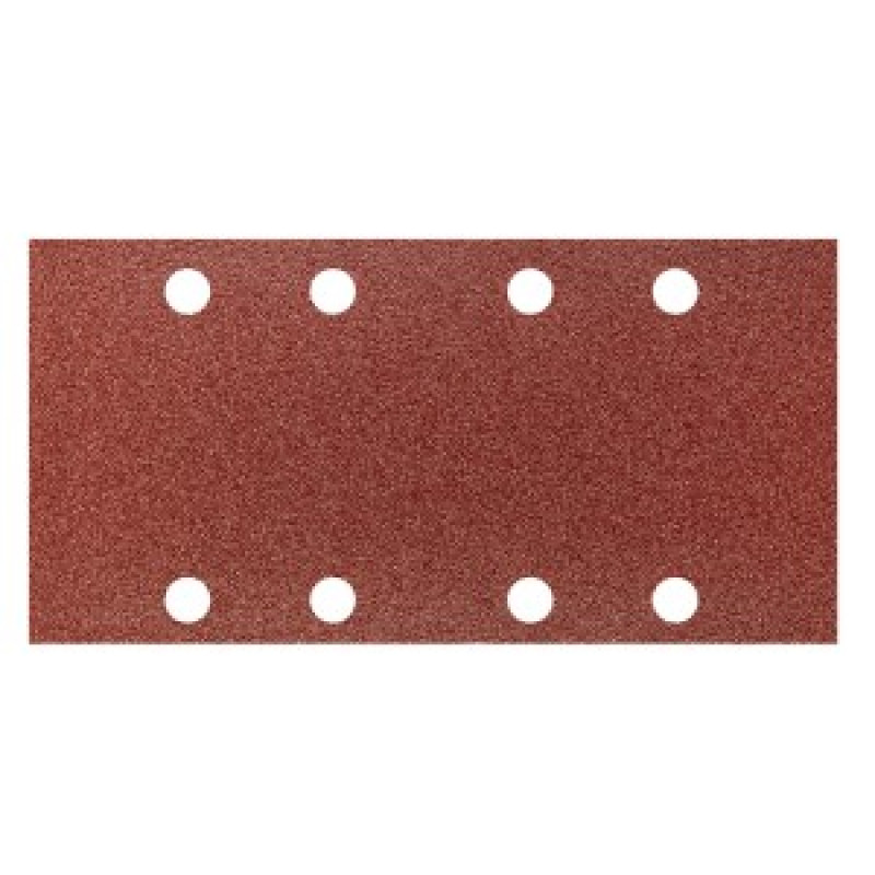 Hartie de slefuit GRAPHITE (ref. 55H738) 93 x 185 mm, granulatie 80, cu gauri. Dedicata slefuirii lemnului, a materialelor pe baza de lemn, a metalelor si a materialelor plastice. Hartia este fabricata din hartie de tip E pentru slefuirea masinilor si are o structura semi-deschisa cu o acoperire de 80-90% a granulelor abrazive (electrocorindon), ceea ce garanteaza o munca mai eficienta si reduce riscul de infundare. Fixarea de tip Velcro permite inlocuirea rapida a hartiei folosite. Produsul este conceput pentru a fi utilizat cu slefuitoarele orbitale. Marca GRAPHITE ofera o gama larga de scule electrice pentru a satisface nevoile profesionistilor.