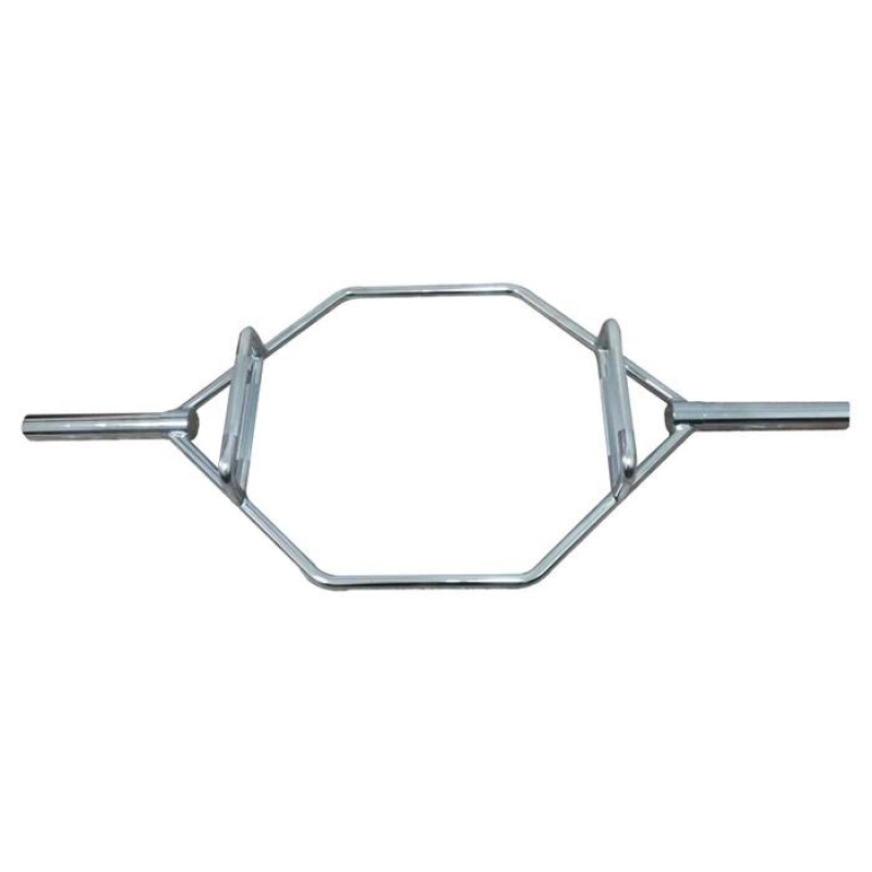 Hex Bar este o bara hexagonala din otel cromat, cu patru manere de prindere.Bara hexagonala este una dintre cele mai bune inovatii pentru antrenamentele de rezistenta si forta. Hex Bar uneori numita si Trap Bar, a devenit un plus nemaipomenit pentru sala de forta, deoarece ofera o modalitate mai prietenoasa de a efectua indreptari cu greutati mari, decat cea a barei drepte, traditionale. Folosirea barei hexagonale va permite sportivului sa diminueze presiunea pe coloana vertebrala inferioara in timpul exercitiilor. Folosita la exercitii precum deadlifts, ridicari din umeri, rows si genoflexiuni.Incarcarea se face cu discuri olimpice cu diametrul interior de 50 mm. Diametrul manerelor de prindere este de 30 mm.Nu are rulmenti, este necesara achizitionarea unor coliere.Culoare: cromata Dimensiuni: 145,5 x 61,5 cm. Greutate suportata: 350 kgGreutate: 23 kg. Producator: Dayu Fitness