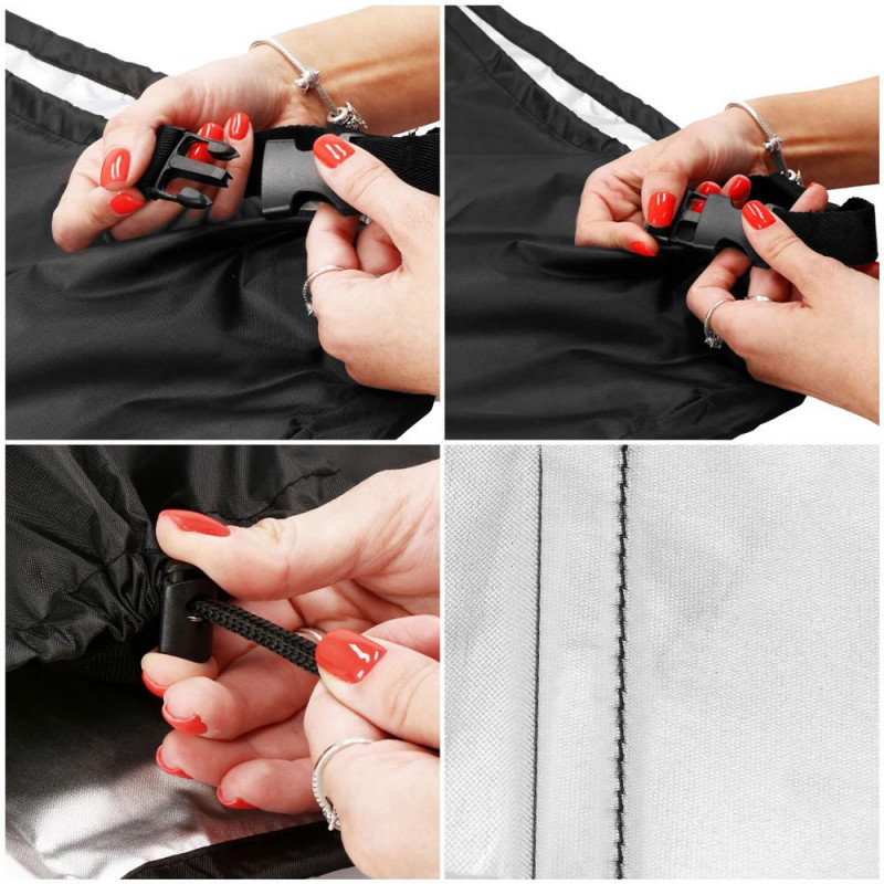 Echipate cu inchizatori cu clichet + brant elastic Capacul este impermeabil, va rezista cu succes la precipitatii. Intinsa corespunzator, astfel incat apa sa nu se lipeasca de ea - va preveni petele inestetice, ruginirea elementelor sensibile sau deteriorarea excesiva a straturilor de protectie, a franghiilor si a lacurilor. Datorita husei, va puteti folosi cu incredere mobilierul ori de cate ori aveti chef - fara a fi nevoiti sa il spalati de fiecare data cand doriti - fara a fi nevoiti sa il curatati de praf, de polenul enervant de primavara sau sa indepartati panzele de paianjen sau cuiburile de insecte. Acestea vor fi intotdeauna curate si gata de utilizare. Puteti sta linistit in ceea ce priveste amenajarea terasei sau a balconului dumneavoastra, unde sunteti nevoit sa va lasati mobilierul in afara sezonului estival. Husa este rezistenta la inghet si va proteja si izola cu succes impotriva temperaturilor scazute. Husa are cusaturi puternice si catarame cu clichet care o mentin eficient intr-o pozitie si asigura o potrivire optima.