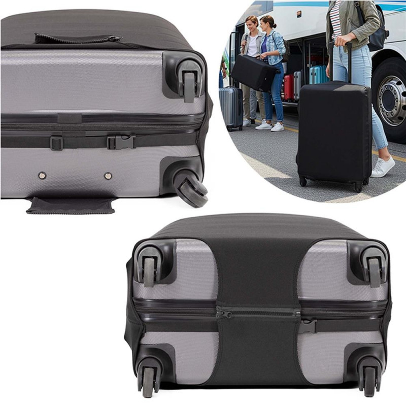Scurta descriere: Husa elastica pentru valiza marime L, conceputa pentru protectia bagajului in timpul calatoriilor. Materialul elastic se muleaza pe suprafata valizei, iar sistemul de inchidere cu fermoar dublu si catarama asigura fixare stabila.
