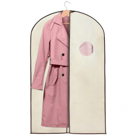 Fereastra transparenta care arata continutul Husa de haine este o solutie excelenta pentru calatorii. Imbracamintea ascunsa in interiorul produsului este protejata impotriva murdariei, pufurilor si a altor astfel de situatii nedorite. Bara de protectie este utila si pentru articolele depozitate in garderoba care se poarta pentru o ocazie speciala, precum costum, rochie sau camasa. Husa are o taietura speciala care permite mutarea cuierului. Accesul usor la continut se datoreaza fermoarului care trece prin centrul produsului.