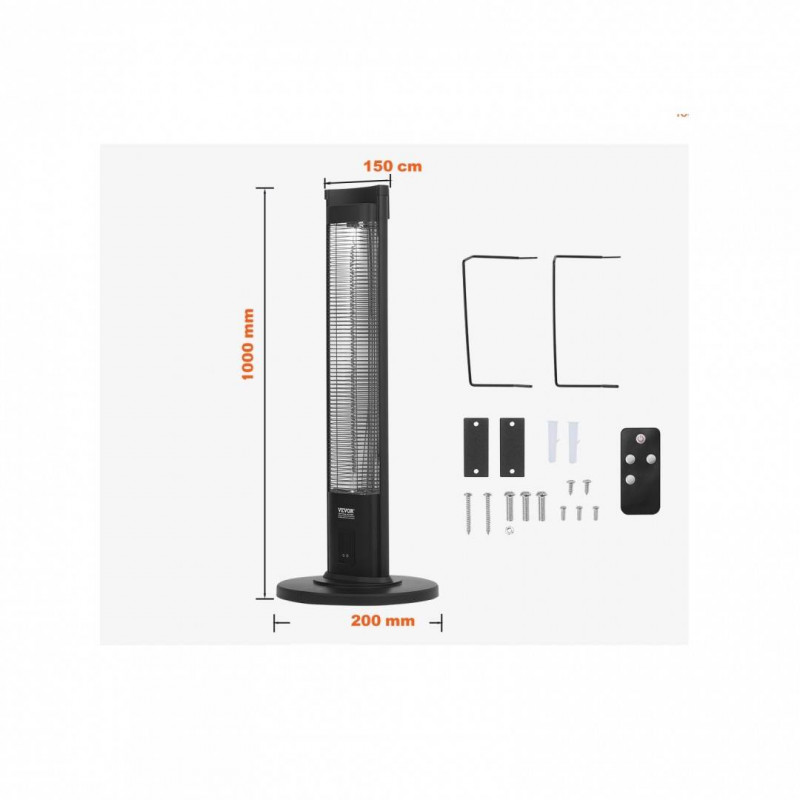 Incalzitor cu infrarosu 2000W, Telecomanda, 3 setari de temperatura, Temporizator, IP34, Aluminiu, 200x150x1000 mm
