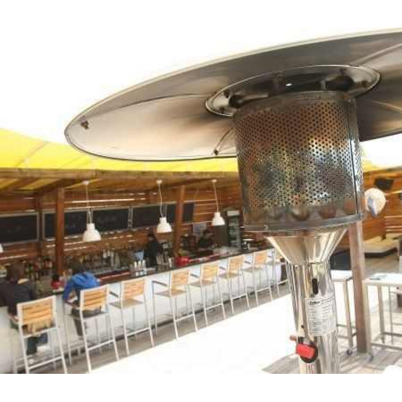 Refelectorul superior din aluminiu emana caldura prin iradiere (exact ca lumina unui reflector) asupra oamenilor şi lucrurilor din apropiere incalzindu-le, practic contribuind la cresterea temperaturii lor.